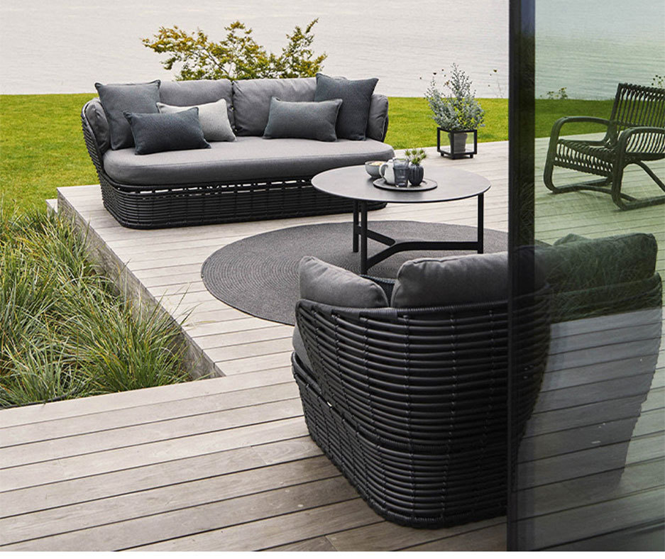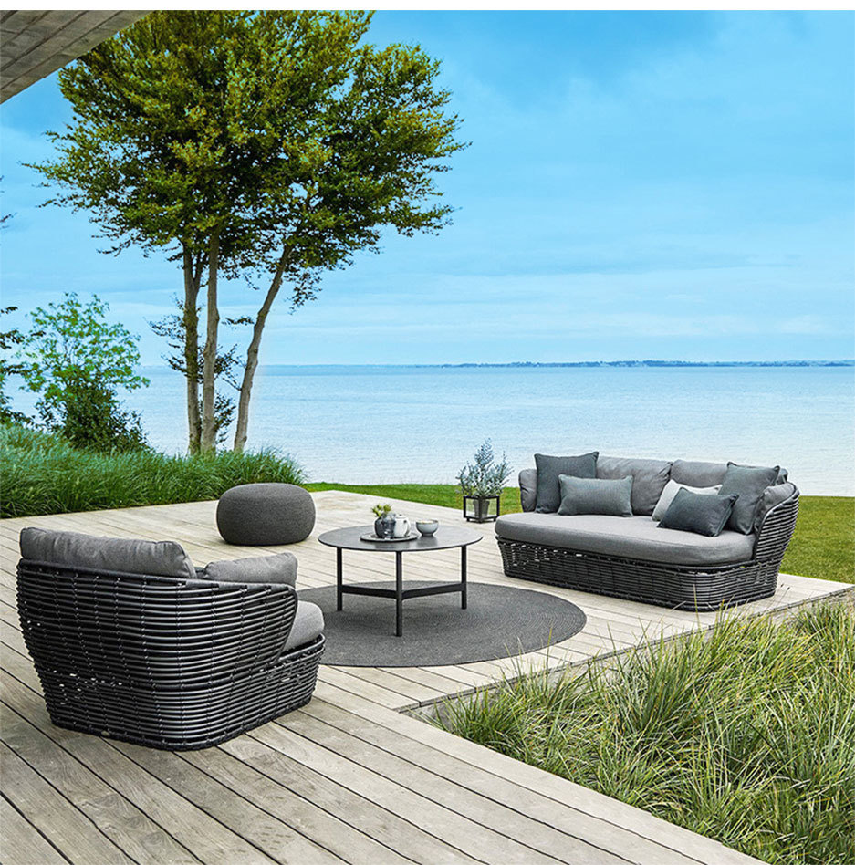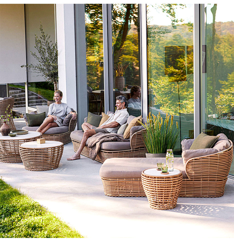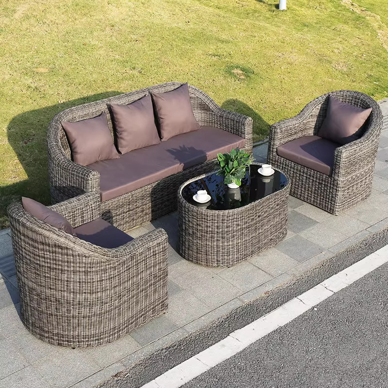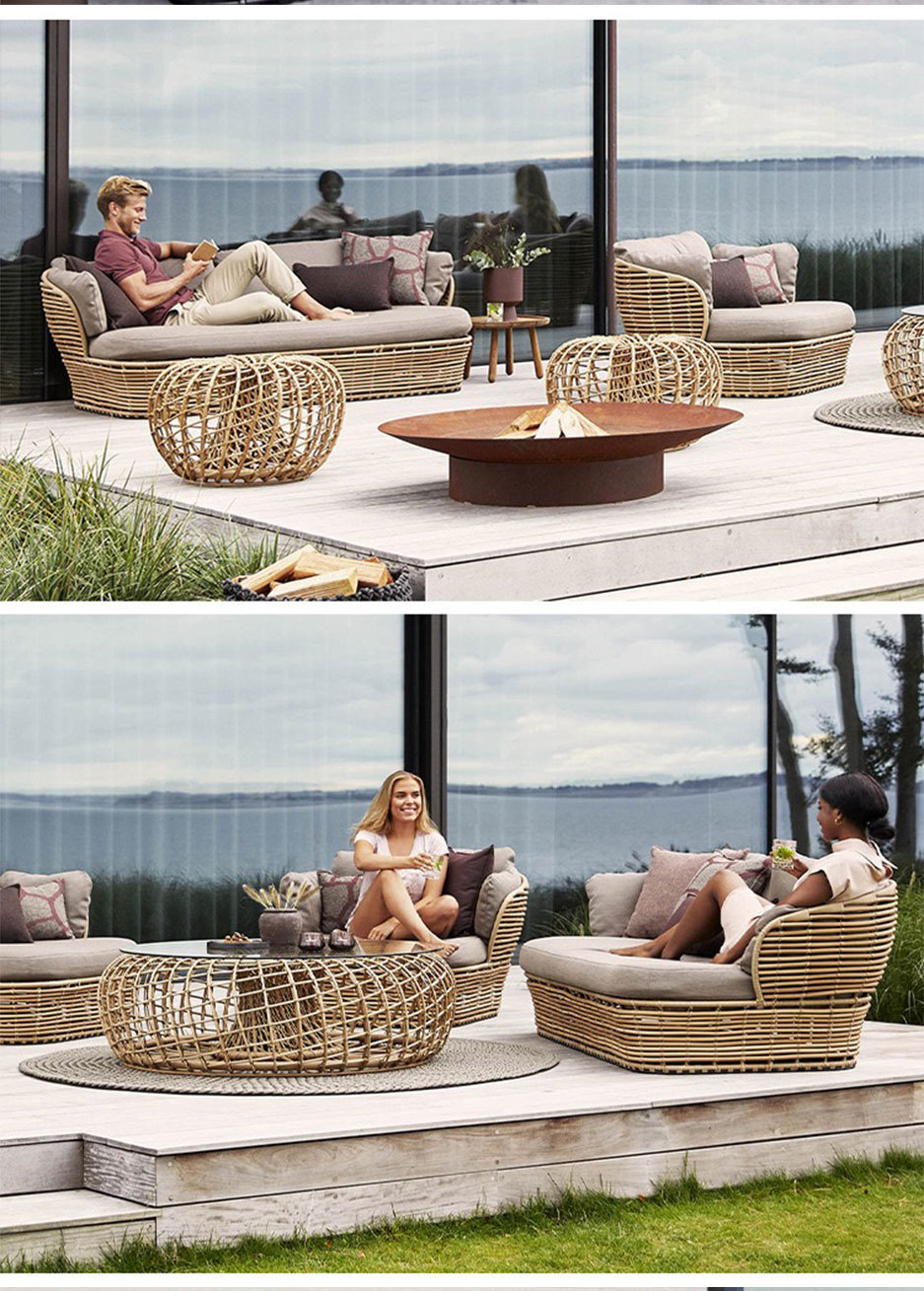 卸売アウトドア家具籐ソファ北欧籐編みソファバルコニー編み籐ソファ椅子屋外三点セット