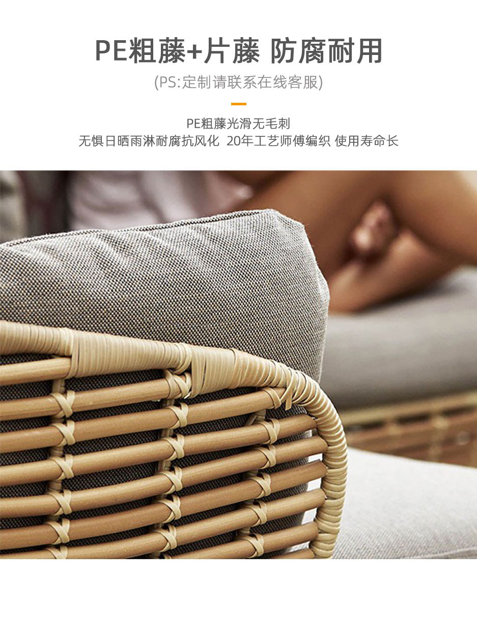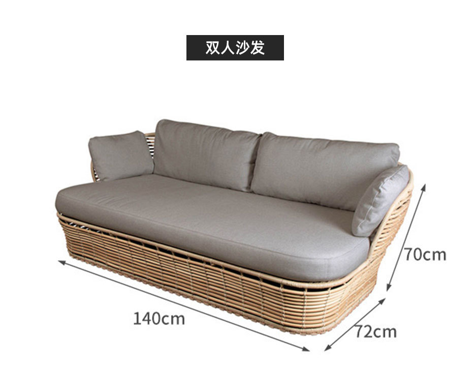 户外别墅休闲双人藤编沙发组合室外防水防晒藤家具圆藤阳台藤沙发