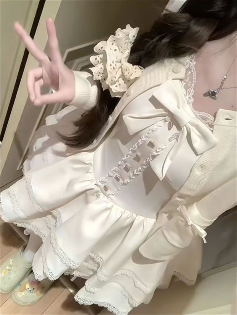 法式古着赫本风黑色裙子女秋两件套修身绝美蓬蓬公主洛丽塔连衣裙