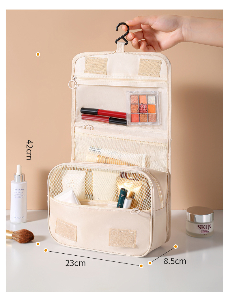 洗面化粧バッグツイル大容量携帯旅行収納バッグ防水男女吊りフック洗面バッグ