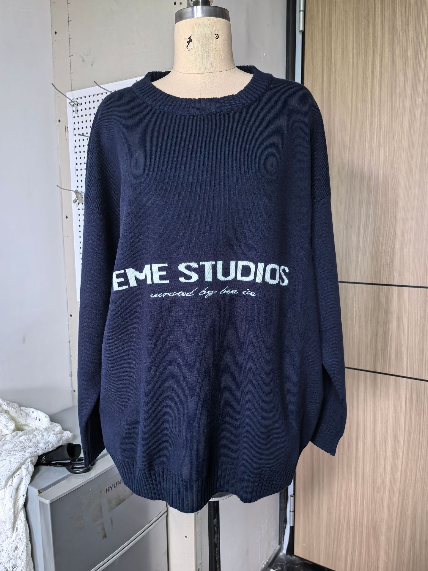 跨境字母提花毛衣女欧美2025秋冬针织套头衫宽松慵懒风刺绣毛衣女