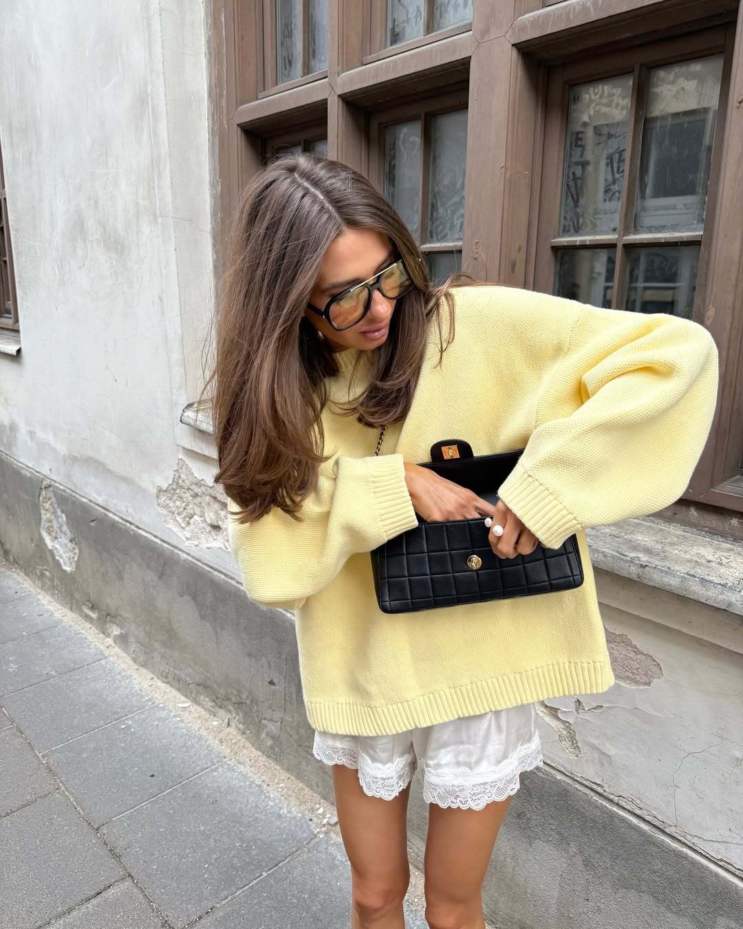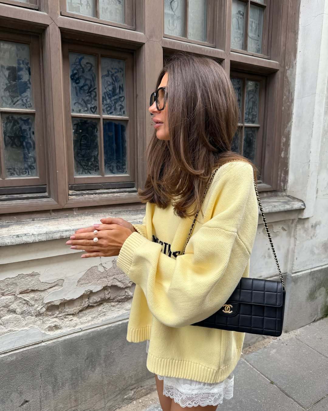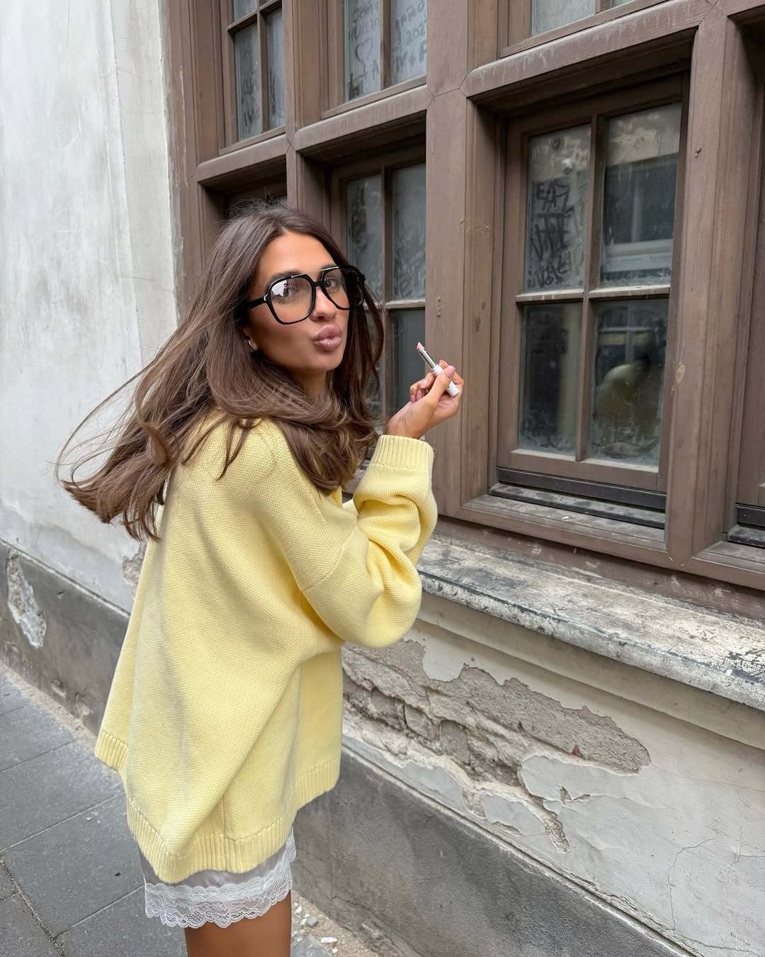oversize毛衣女2025新款春秋美式复古宽松黄色上衣百搭针织衫批发