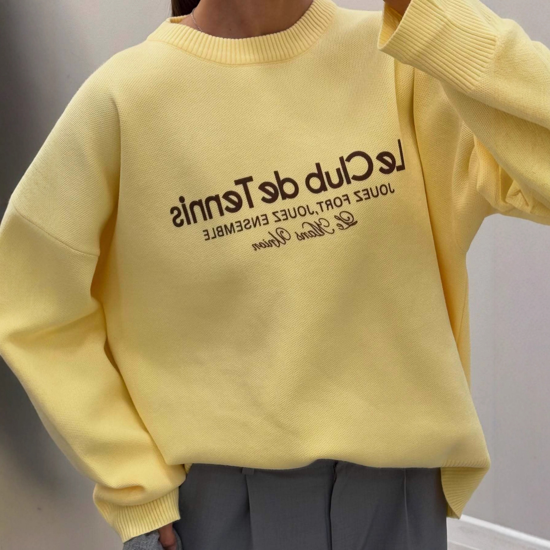 ルーズレトロレイジースタイルレターセーター女性のための秋と冬の 2025 新しいプルオーバー黄色のセーター女性のためのボトリングトップ