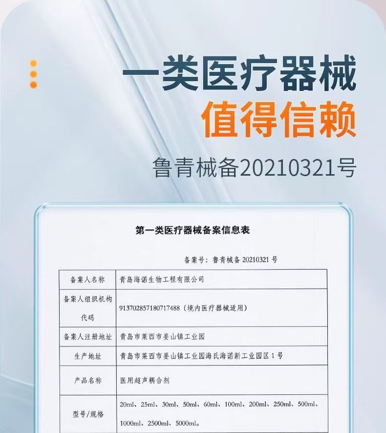 海氏海诺医用超声耦合剂医疗器械专用润滑剂医用护理美容面膜剂