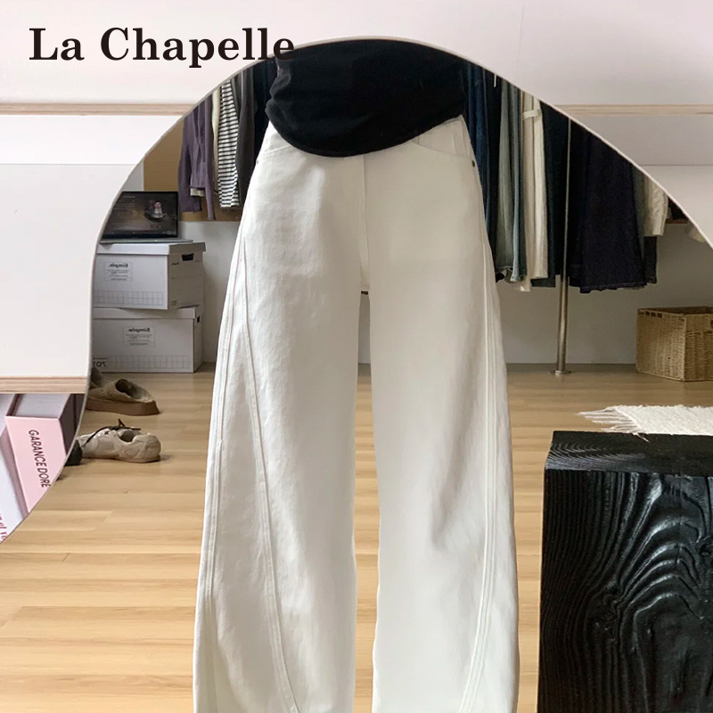 白色弯刀阔腿牛仔裤女2025秋季潮流百搭新款高腰显瘦直筒镰刀裤子