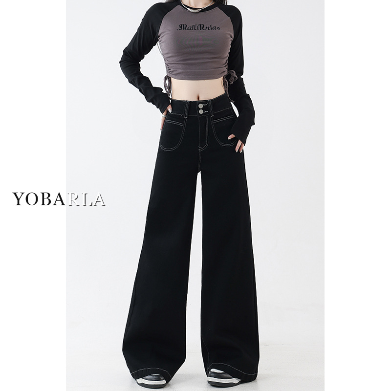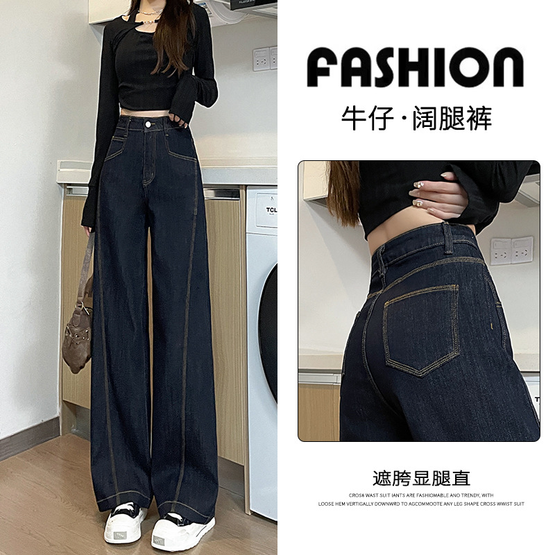 丹宁蓝阔腿牛仔裤女2025年秋冬潮流新款高腰今年流行直筒拖地裤子