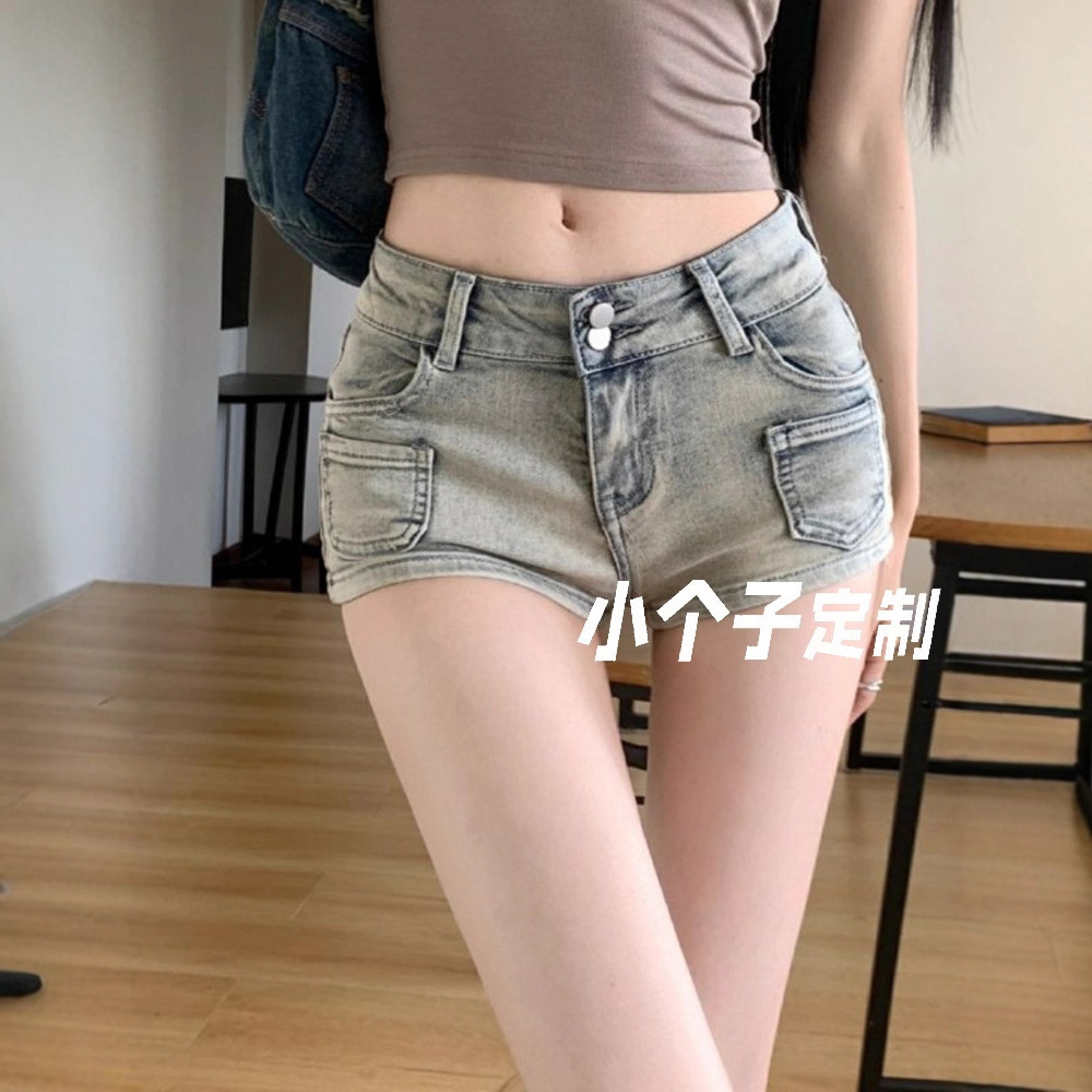 辣妹低腰牛仔超短裤女夏季修身显瘦包臀热裤小个子复古浅色直筒裤
