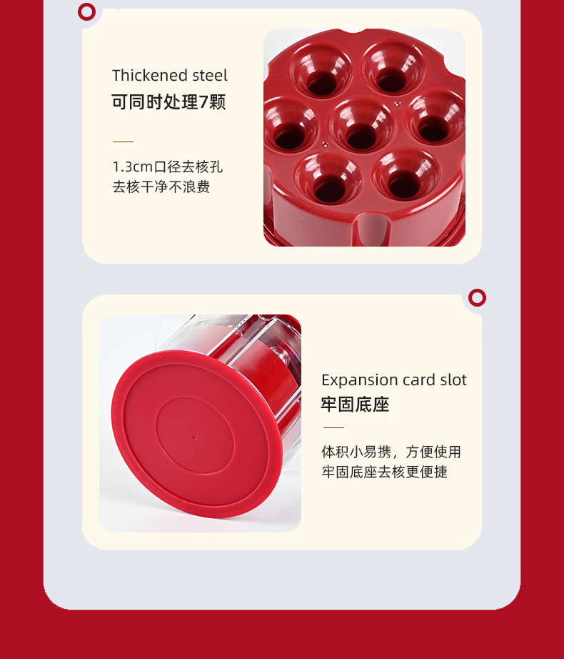 新型チェリーコアリムーバー 7穴プッシュ式コアリムーバー キッチンデーツコアリムーバー チェリーコアリムーバー