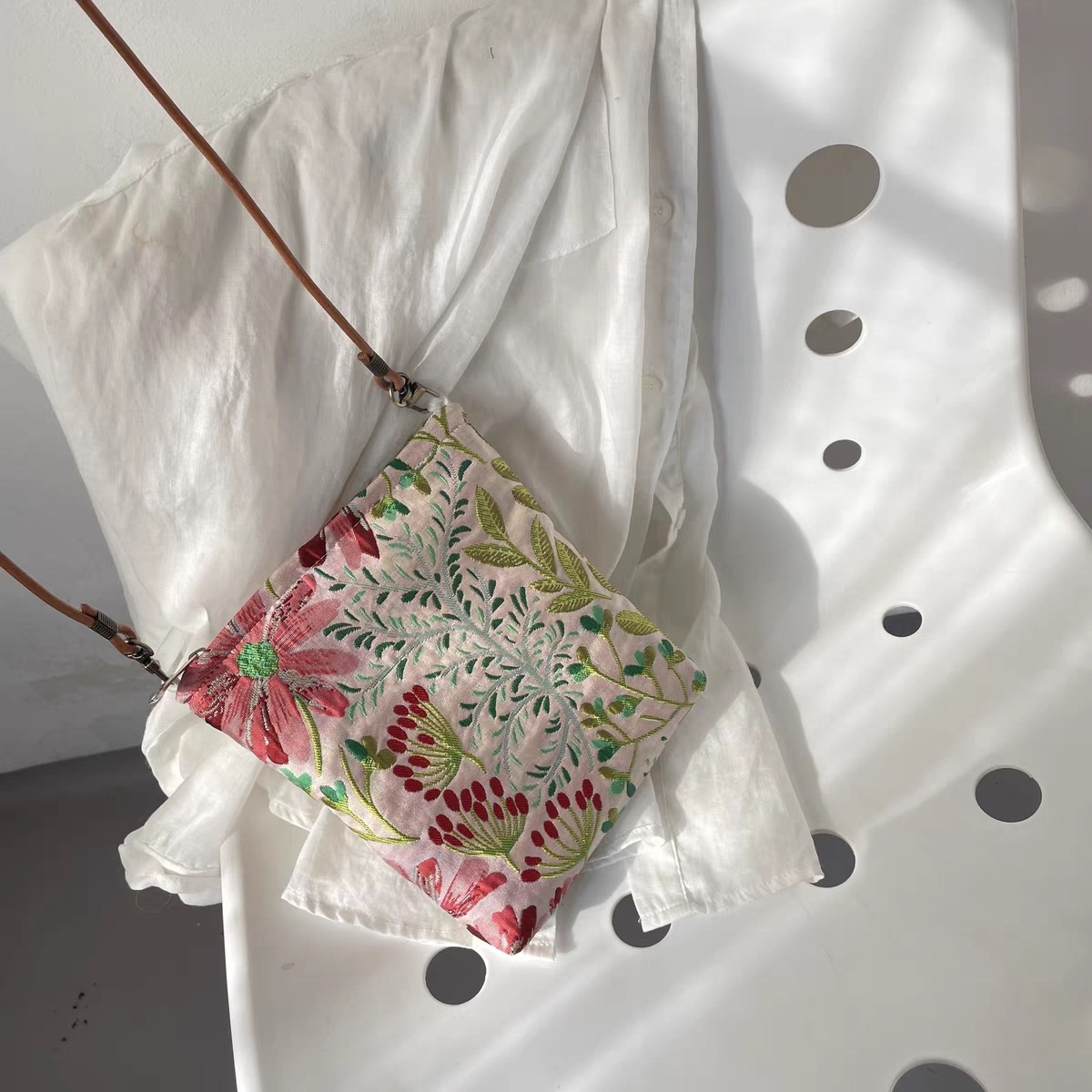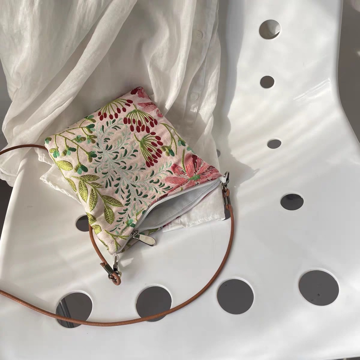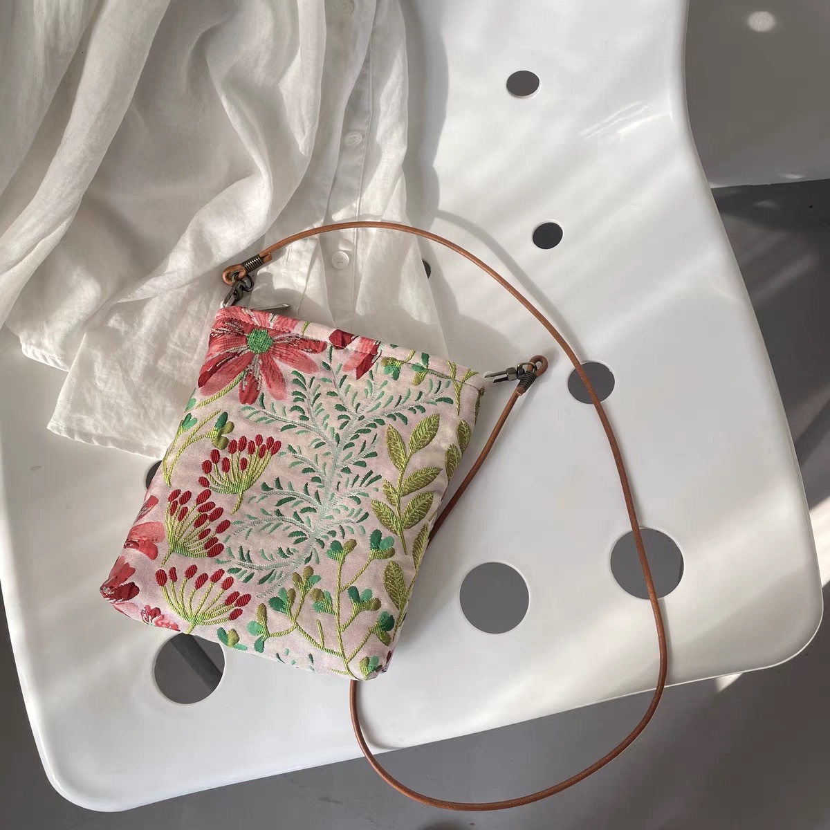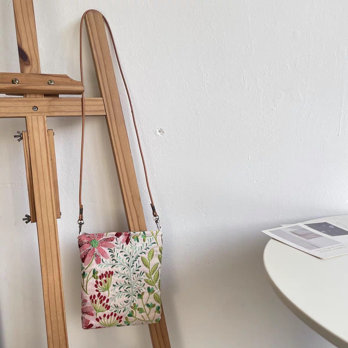2025 新しいスタイルの小さな新鮮な刺繍花柄携帯電話バッグ中国風の美しいショルダーバッグクロスボディバッグクラッチバッグ