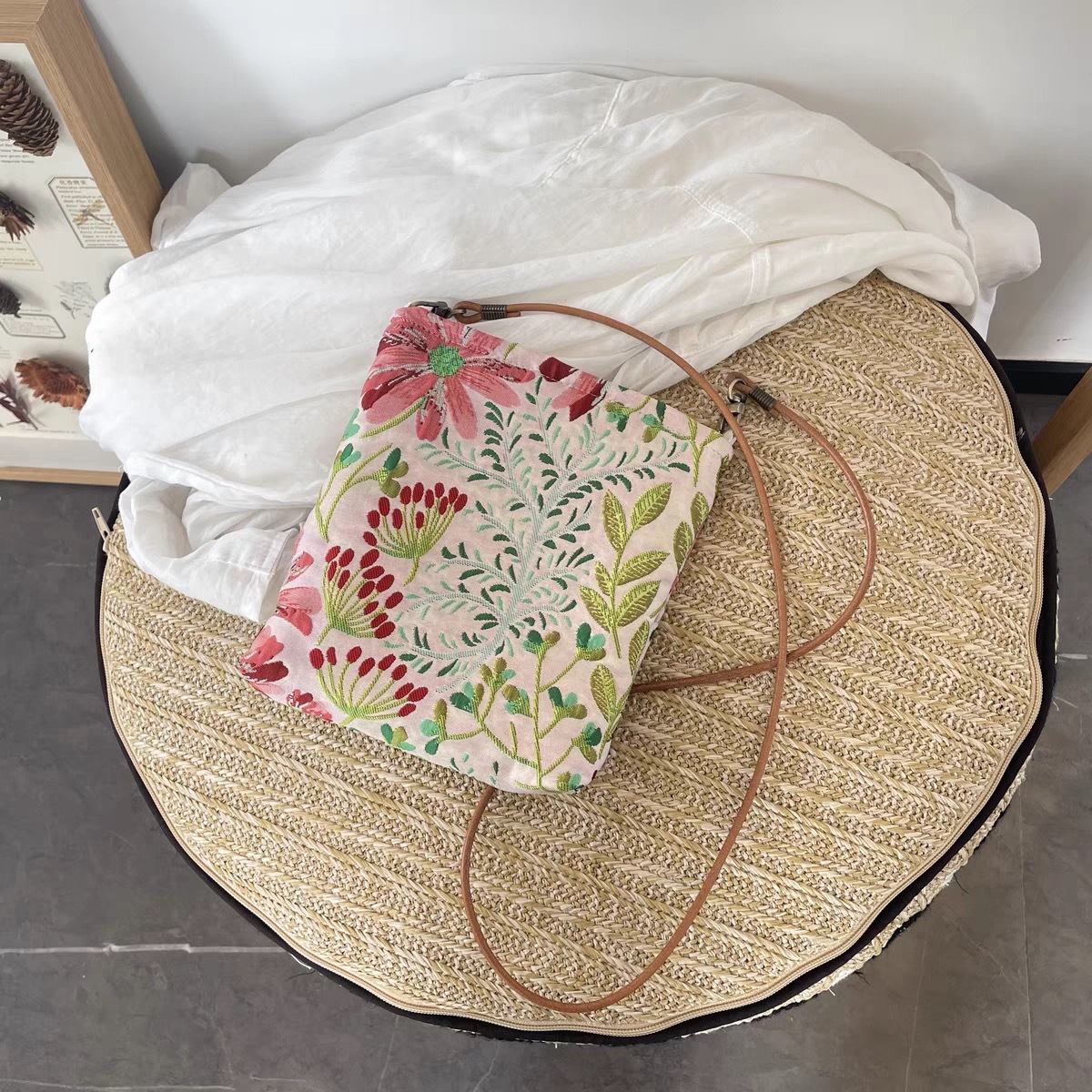 2025新商品オリジナルリネン刺繍花花びら片肩特包春夏百合シンプル文芸バッグ