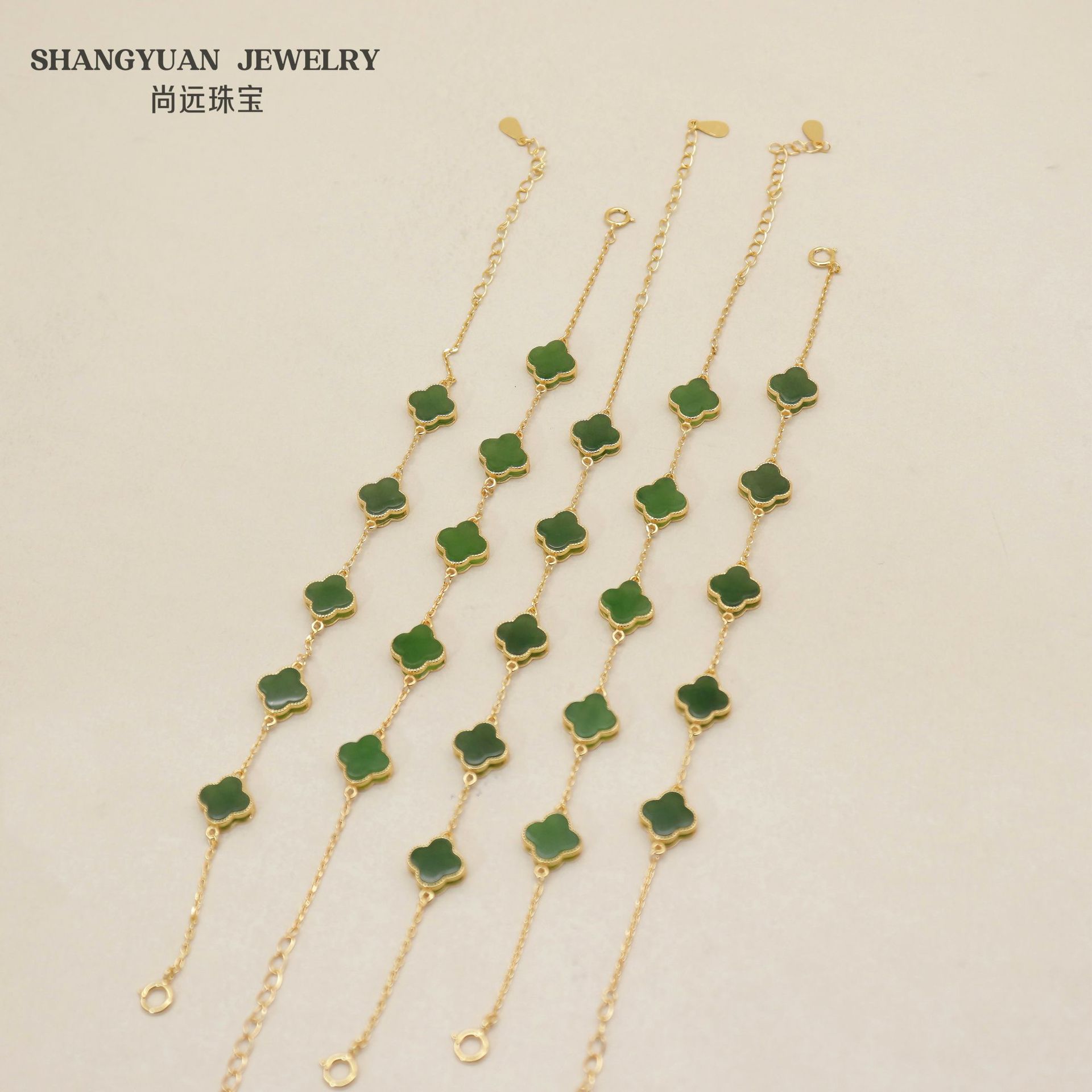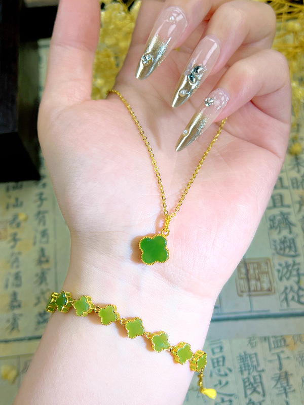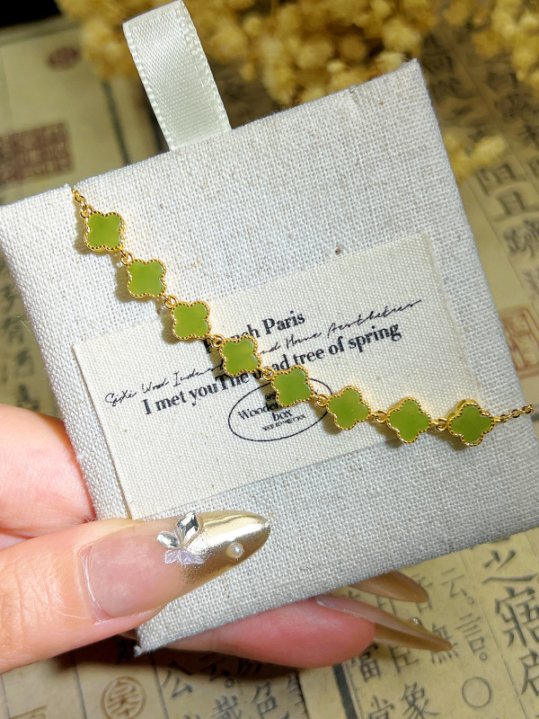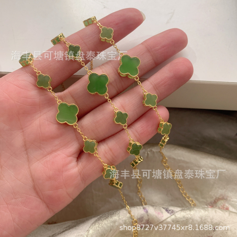 メーカー卸売り天然和田玉碧玉四つ葉草ブレスレットS925銀モザイク
