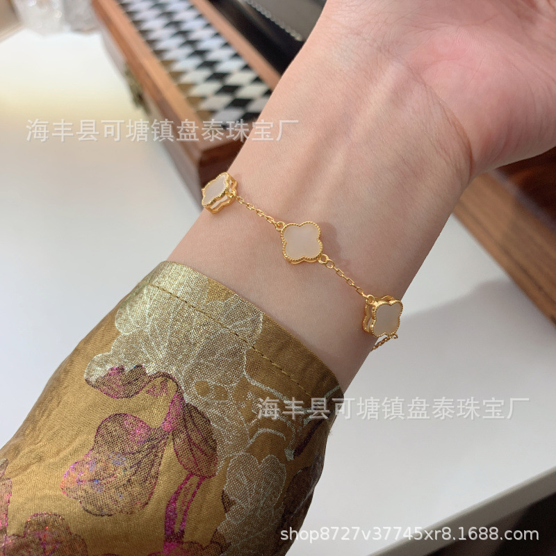 メーカー卸売り直売天然和田玉白玉四葉草清新デザインブレスレット925銀モザイクジュエリー