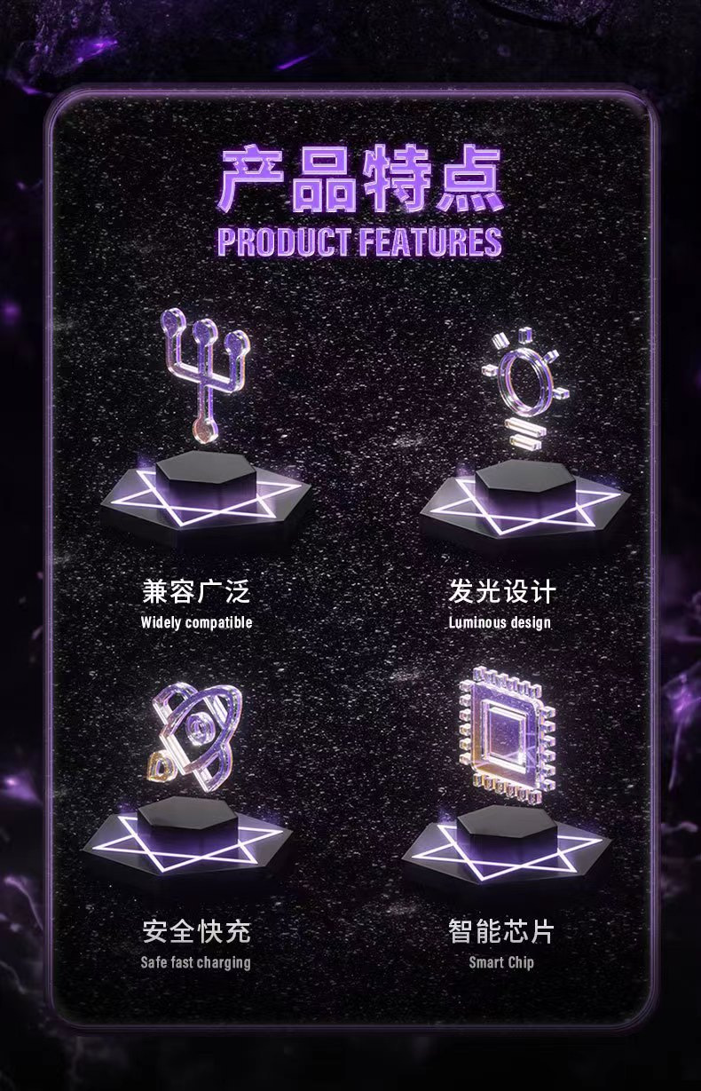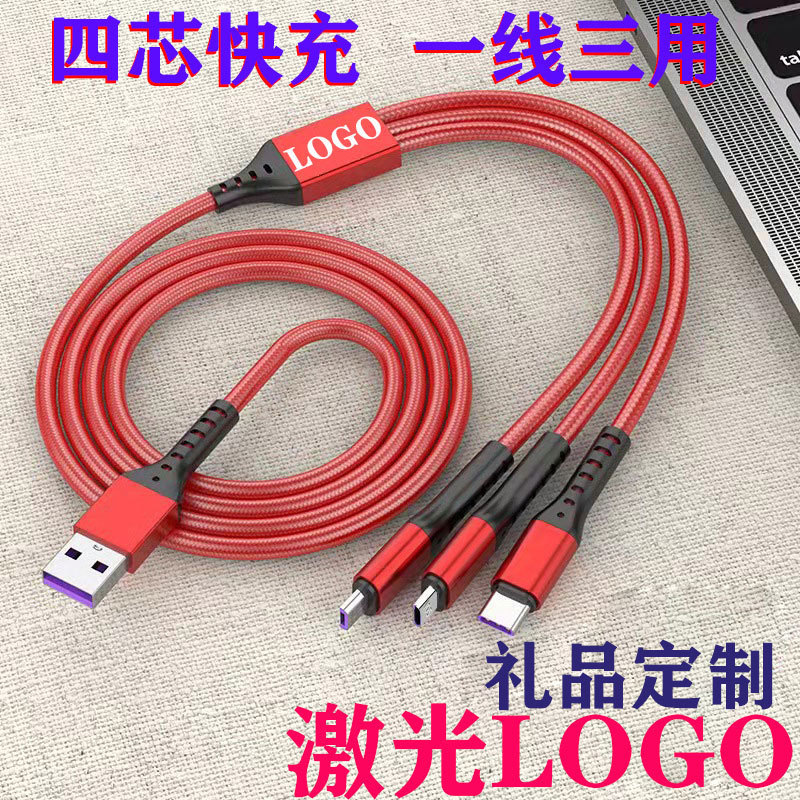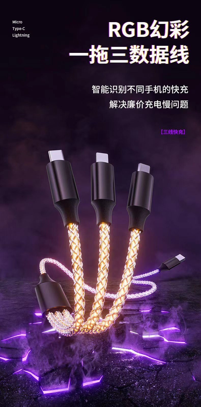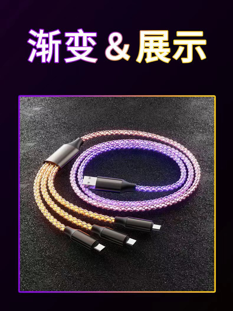 RGB七彩发光数据线TypeC一拖三手机充电线三合一车载超级快充LOGO