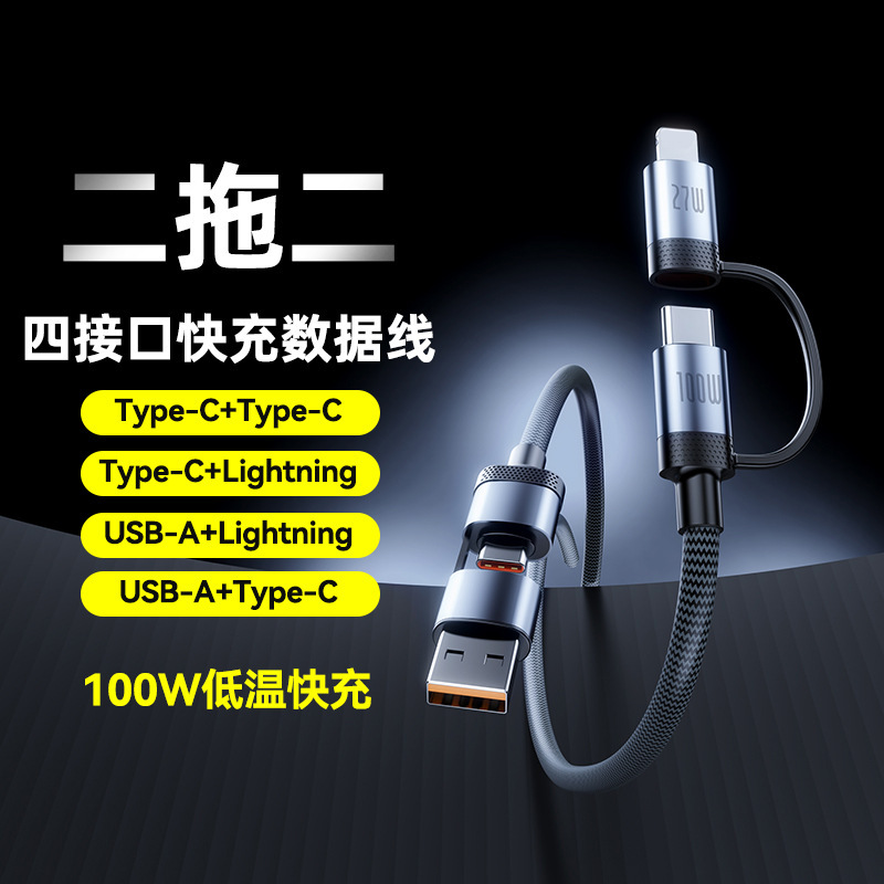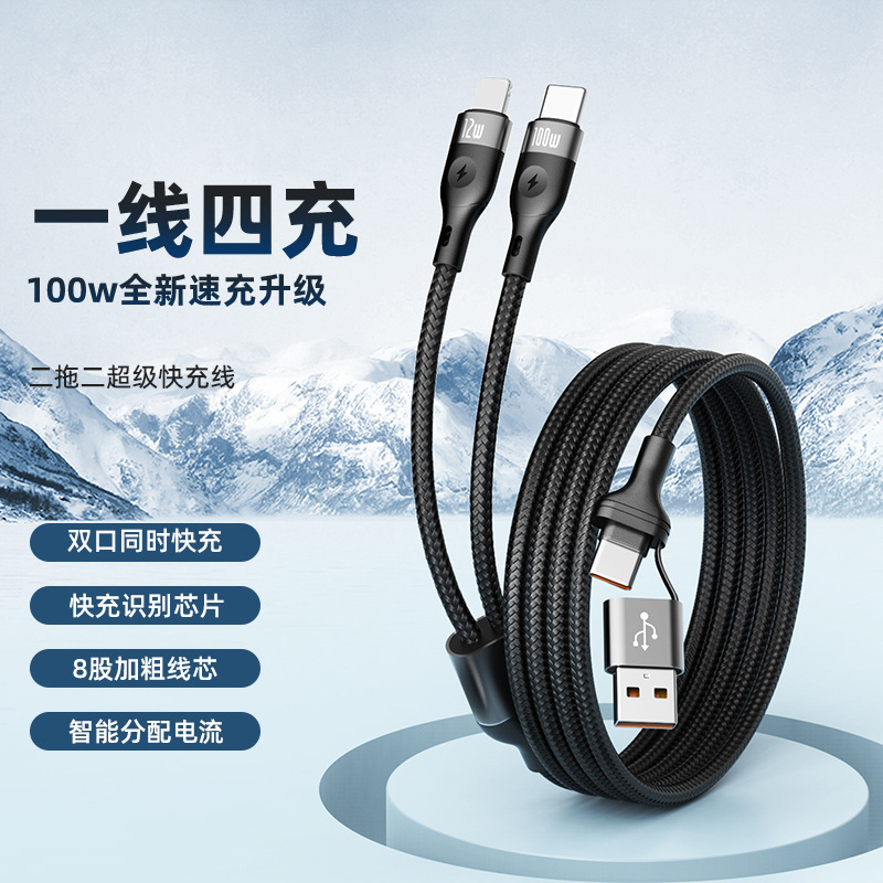 100W超高速充電2対2データケーブル、OPPO Huawei Apple 15 Xiaomi PDフォーインワン充電ケーブルに適しています