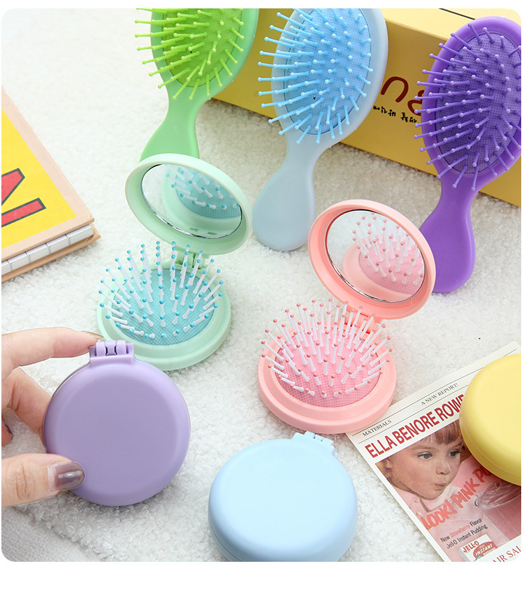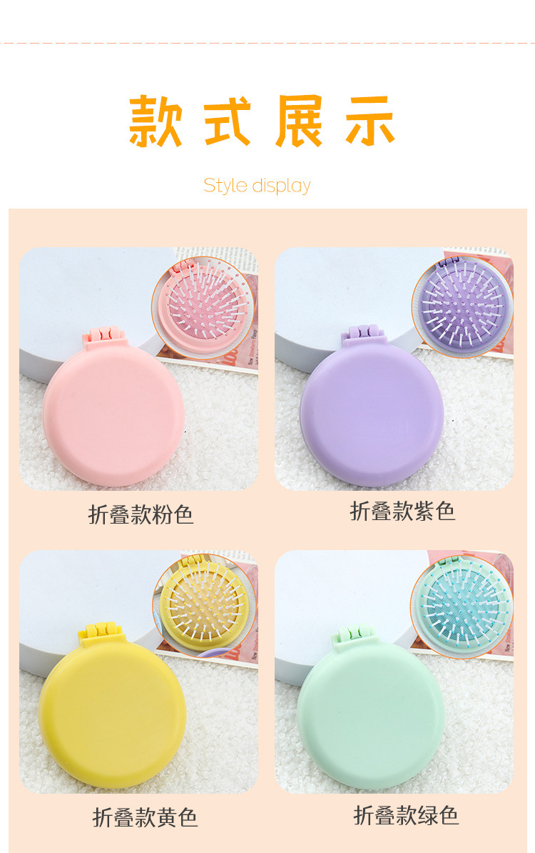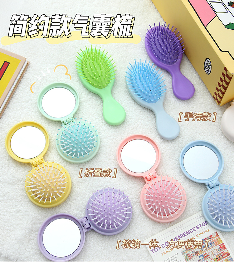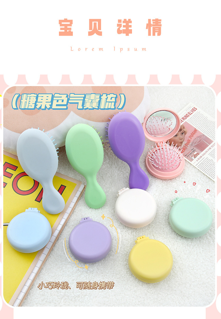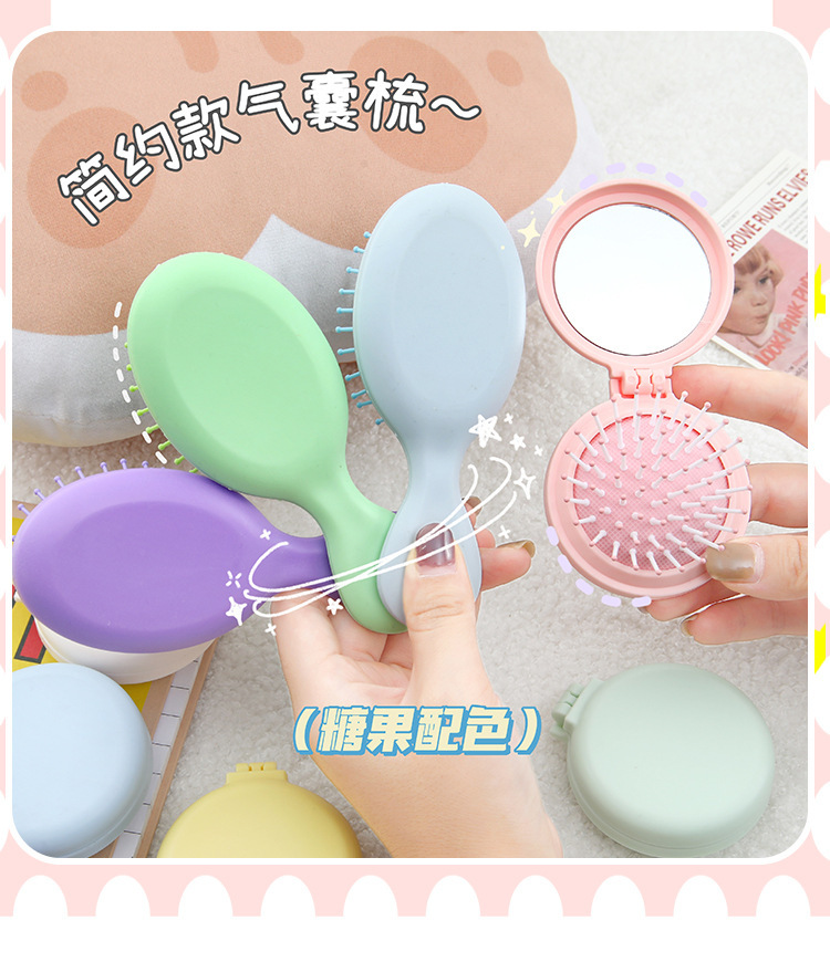 かわいいキャンディー色のエアマット櫛ミニ携帯折り畳みエアバッグ櫛家庭用女性マッサージ櫛鏡一体頭櫛