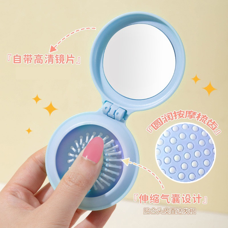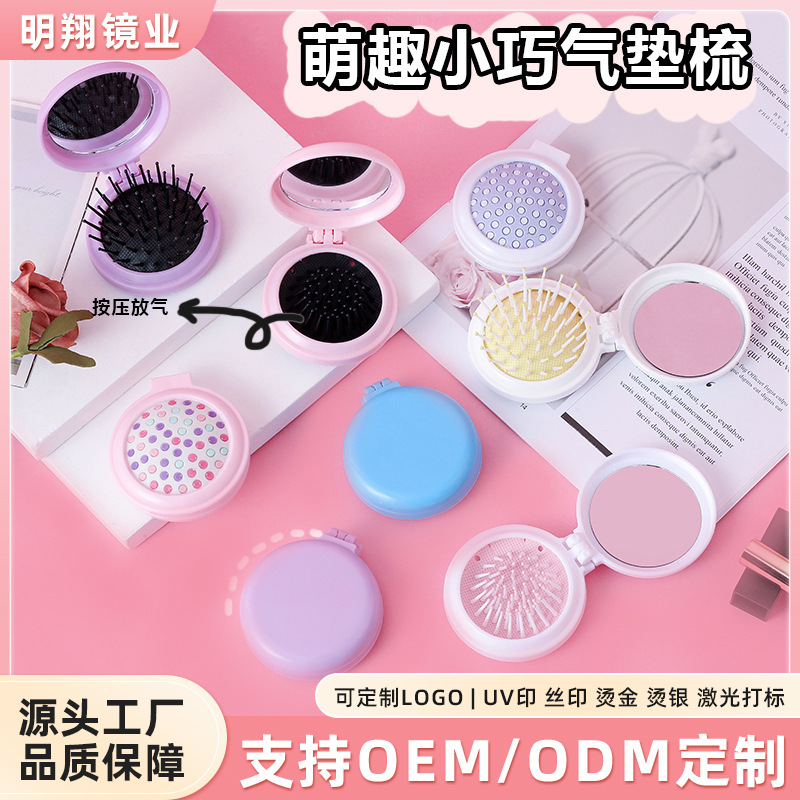 折り畳みエアバッグ小櫛化粧鏡付きDIYかわいい少女エアクッション頭部マッサージ櫛鏡一体卸売り