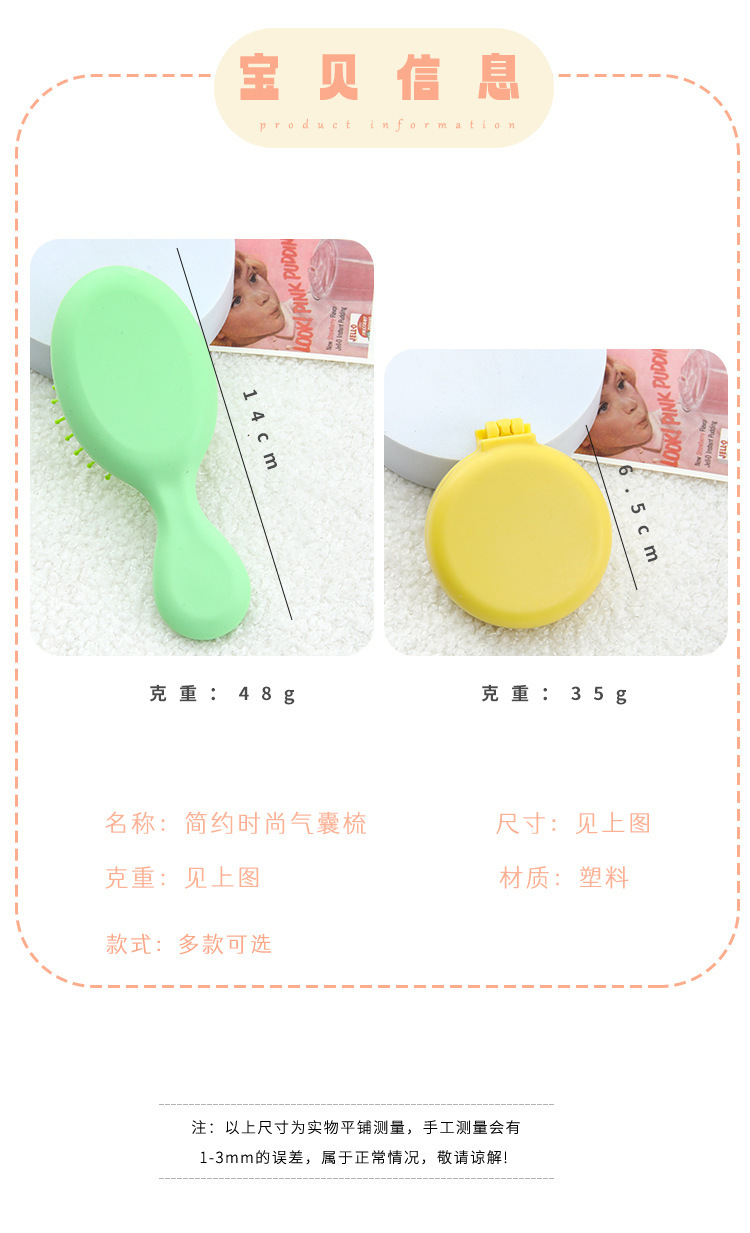 简约马卡龙配色气囊梳子纯色便携折叠镜梳气垫梳二合一迷你便携镜