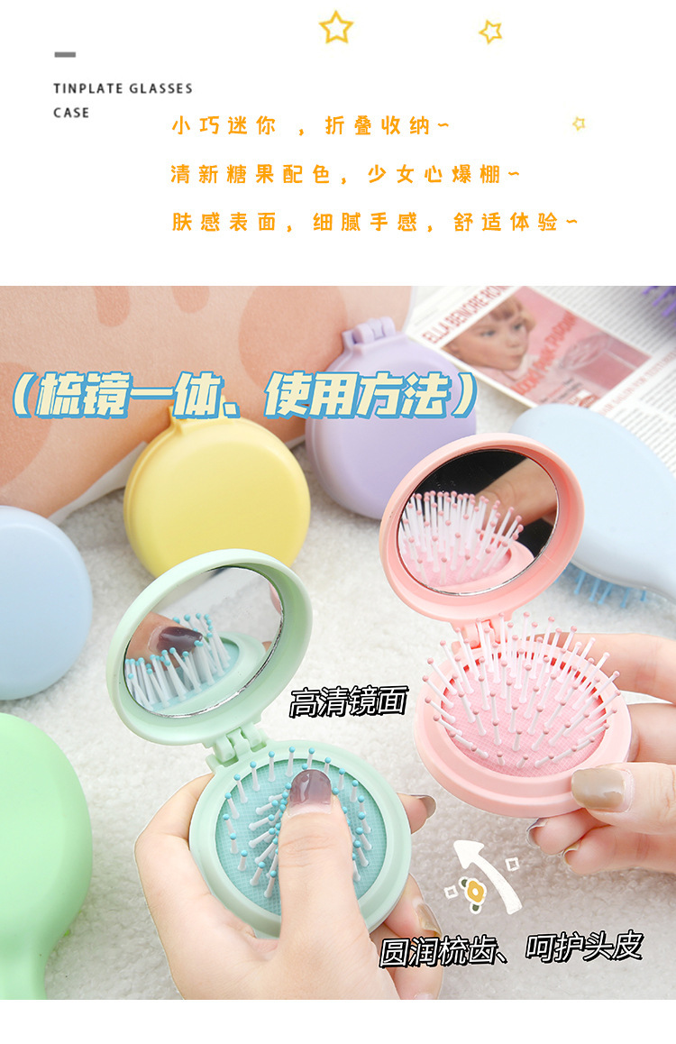 可爱糖果色气垫梳迷你便携折叠气囊梳家用女士按摩梳镜子一体头梳