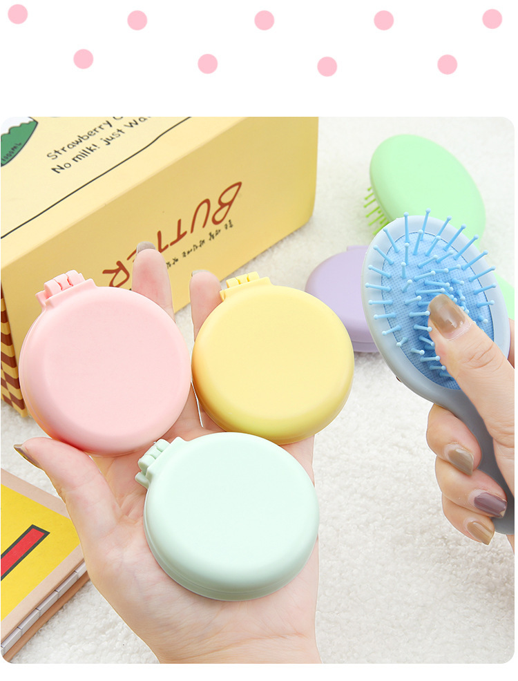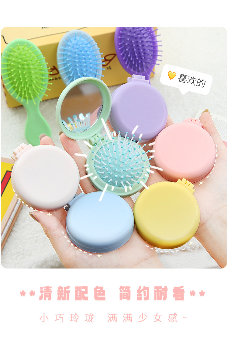 シンプルなマカロンエアバッグコーム無地ポータブルミラーマッサージコーム女の子キャンディーカラー理髪折りたたみコーム