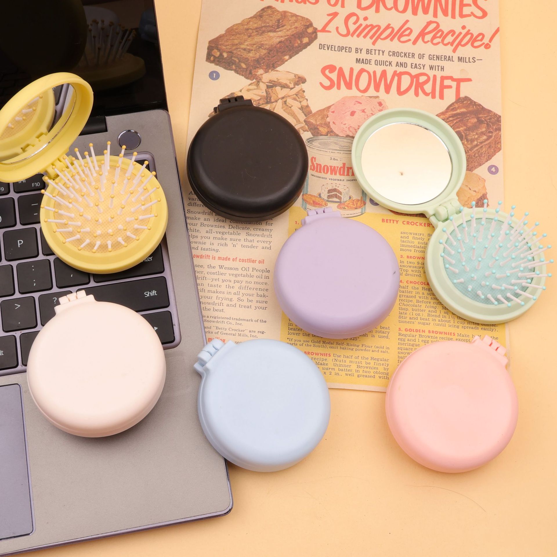 折り畳みかわいいミニ携帯円形エアバッグ鏡櫛一体櫛鏡付きカバーins風工場卸売り