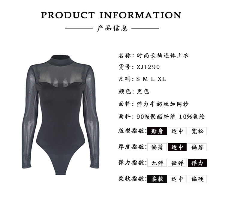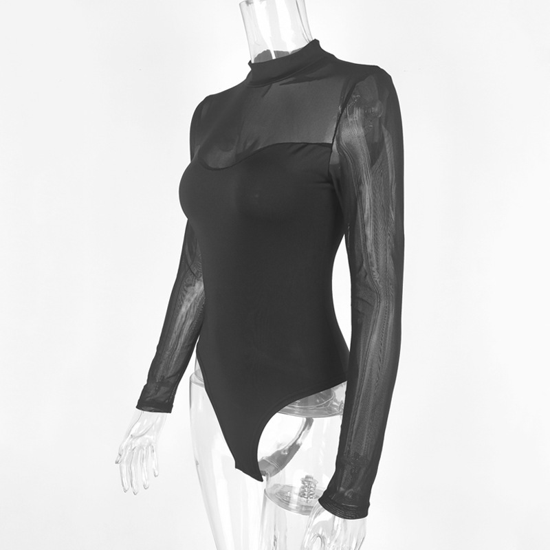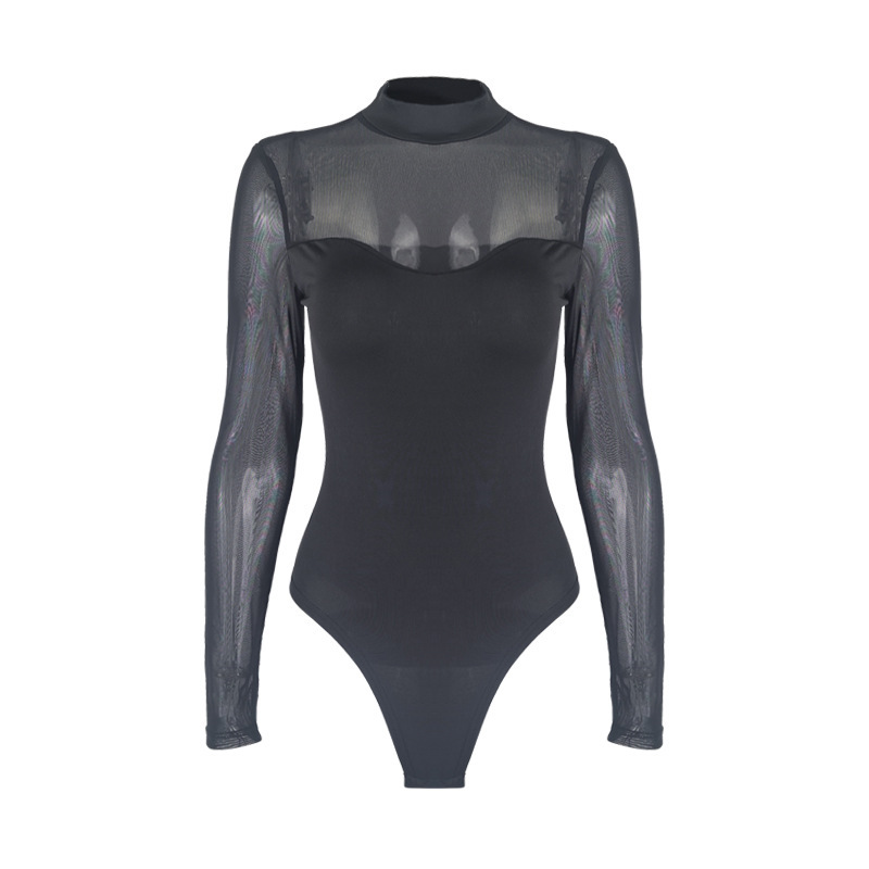 ヨーロッパとアメリカのセクシーな妹黒メッシュスプライシング長袖 2025 夏の新スリムフィットボトムジャンプスーツ女性のための