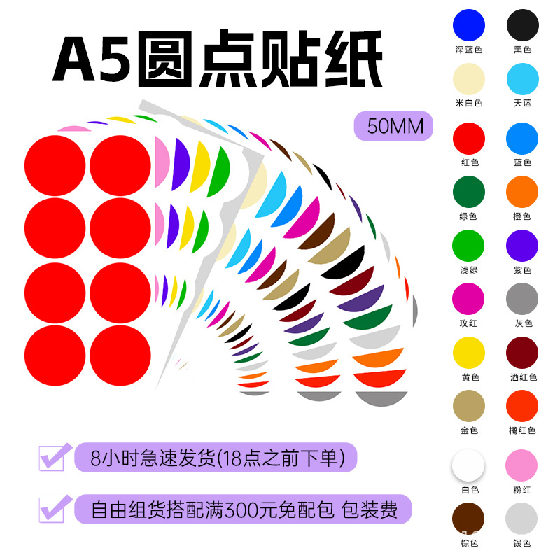 A5ステッカー6mmシールカラーコート紙丸点貼り月波点分類記号手書き円形シール
