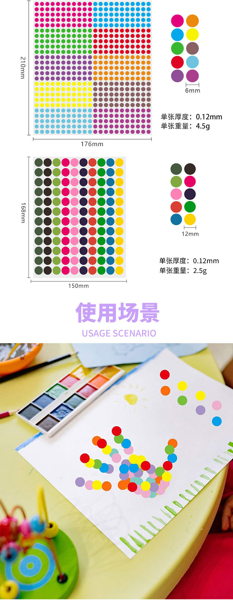 カラーマルチサイズドットステッカー子供幼稚園手書き空白分類コート紙ステッカー色ラベル