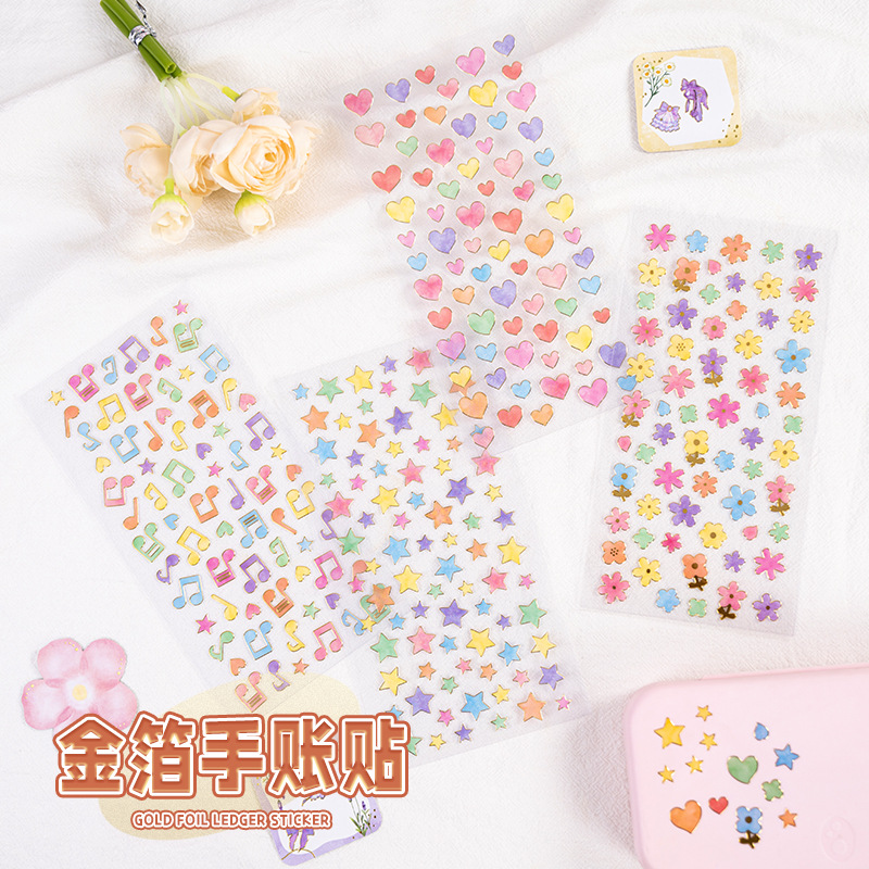 美しいカラフルな星、ハート、ハンドブックステッカー、金箔、音符、花、女の子向けDIY日記、水筒、携帯電話デコレーション