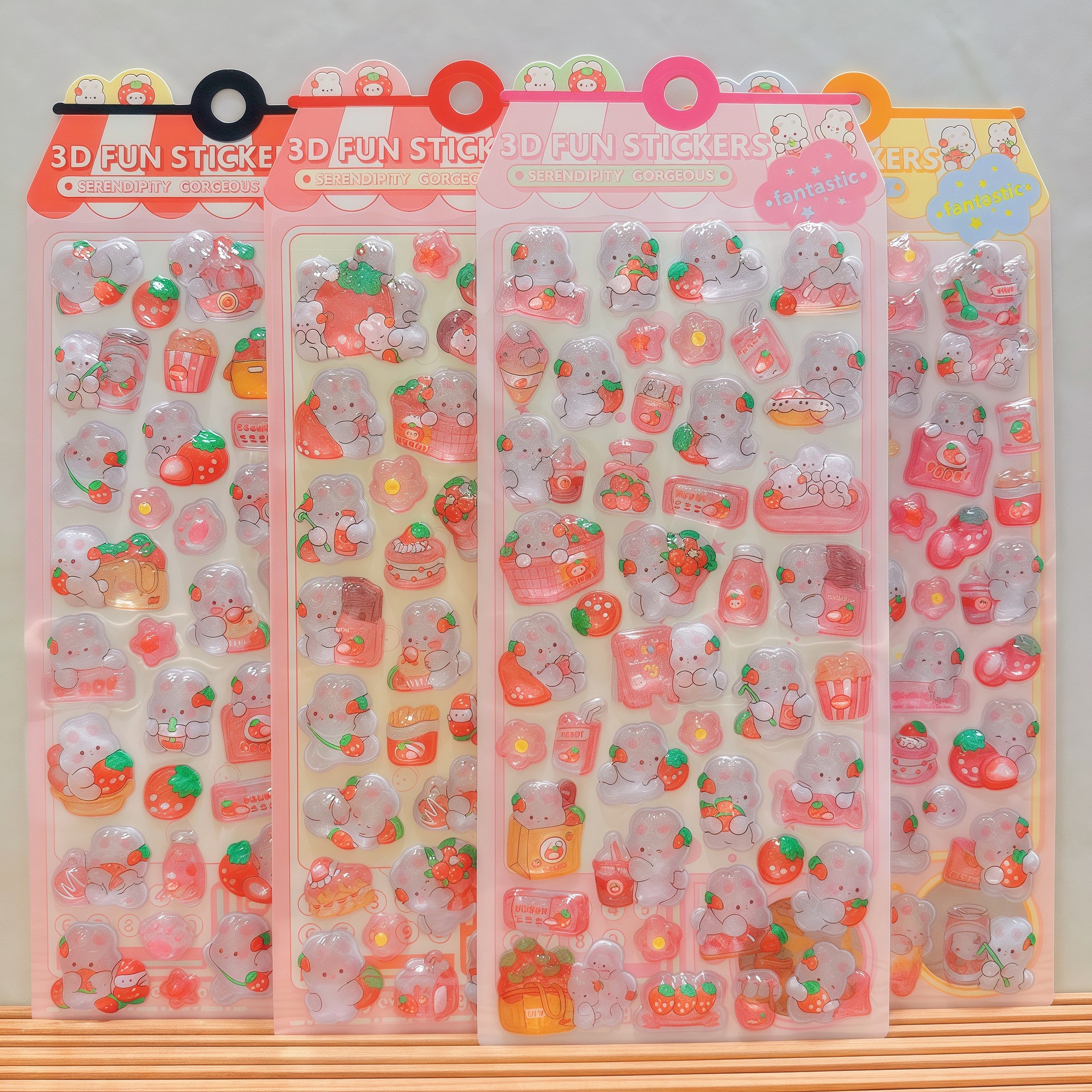 3D立体クリスタルステッカー ピンクのうさぎちゃん 可愛いイチゴ 小さなウサギ 子供の手作りデコレーション 携帯電話素材ステッカー