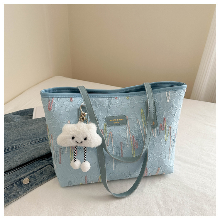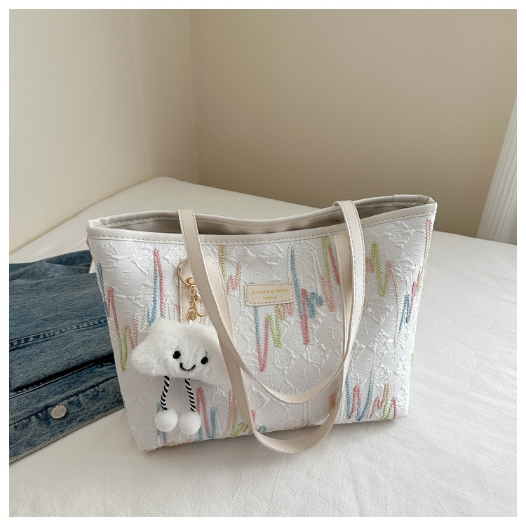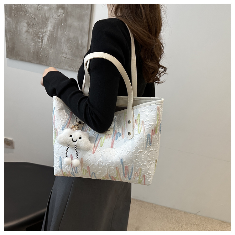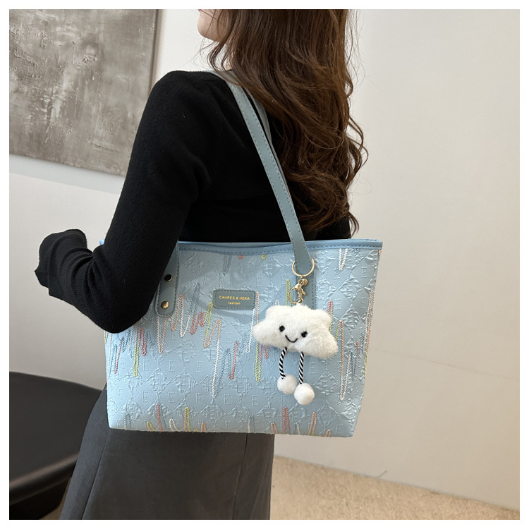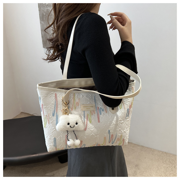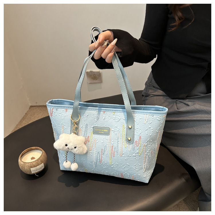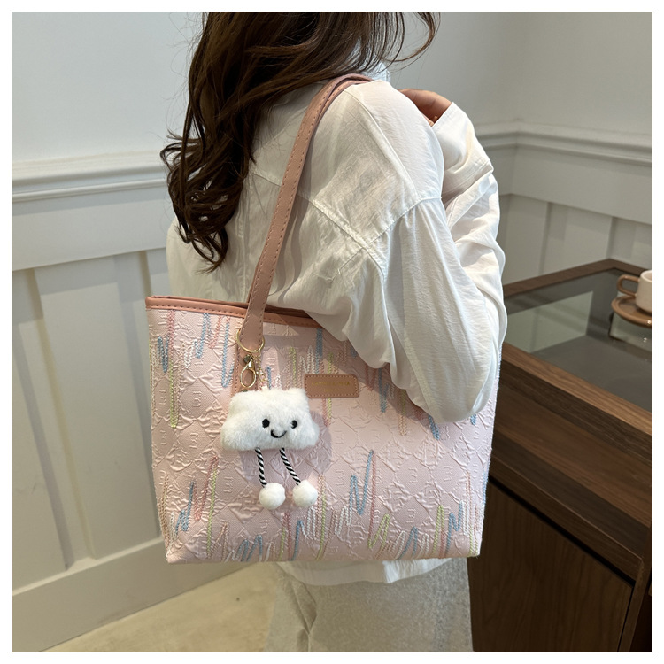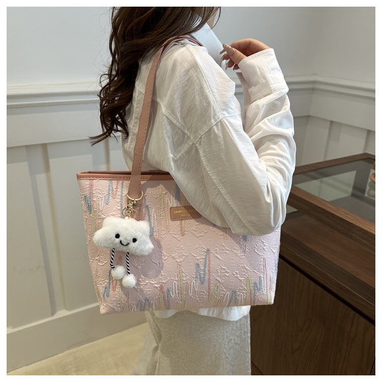 今年人気の大容量トートバッグ女性用2025新作シンプルでかわいいペンダント質感仕事通勤ショルダーバッグ