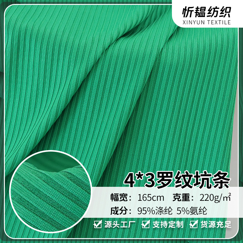 4*3 リブピットストリップ弾性糸ニット生地ポリウレタンリブプルアップトップドレスワイドレッグパンツ生地