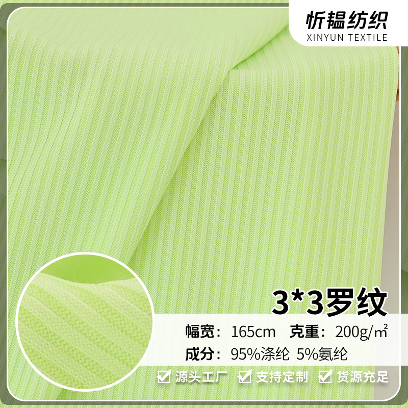 在庫あり 3*3 リブピットニット糸プルアップ生地弾性ポリエステルベースシャツパンツドレス生地