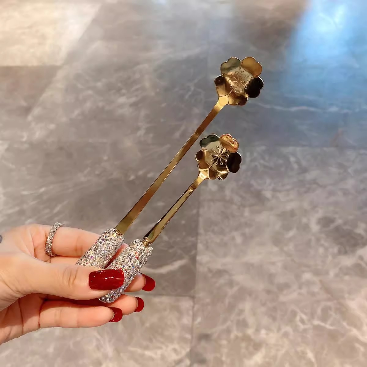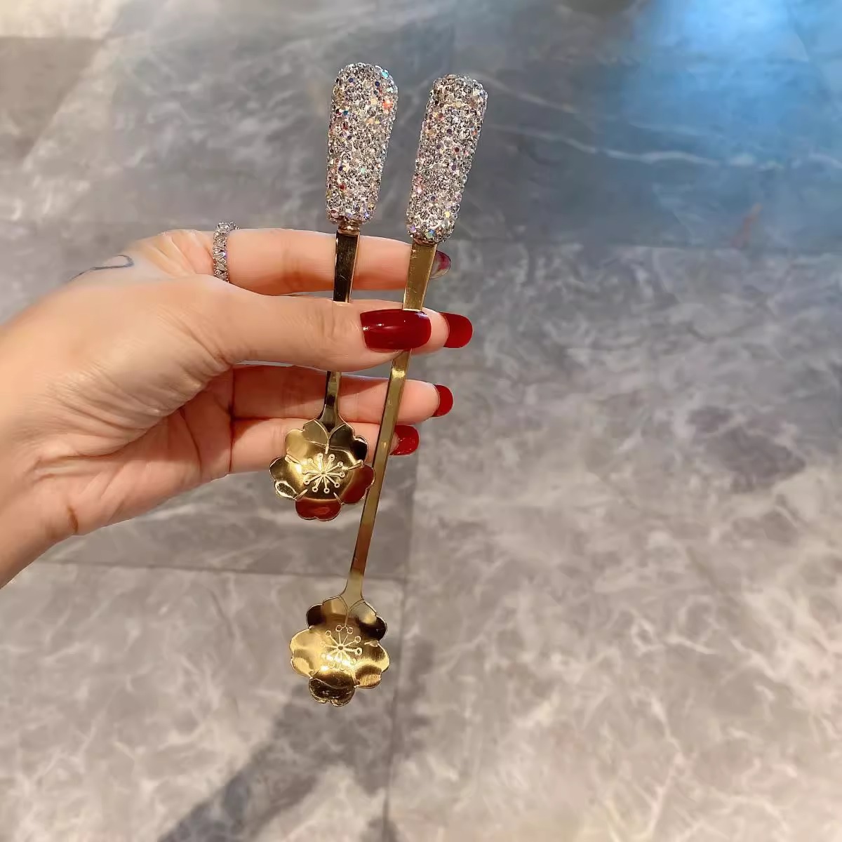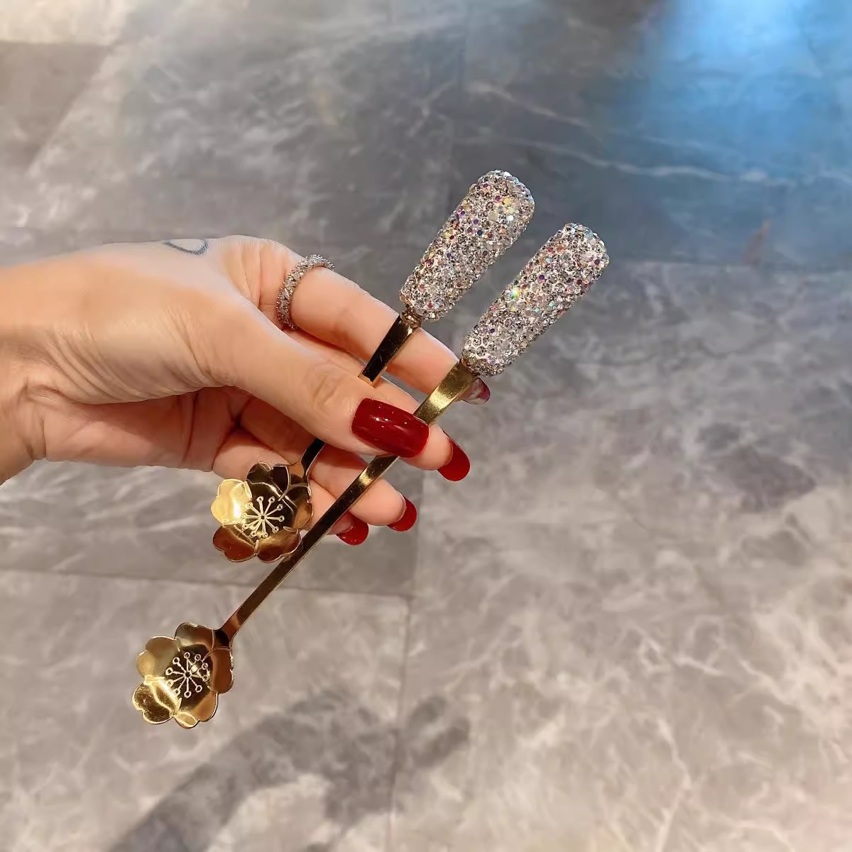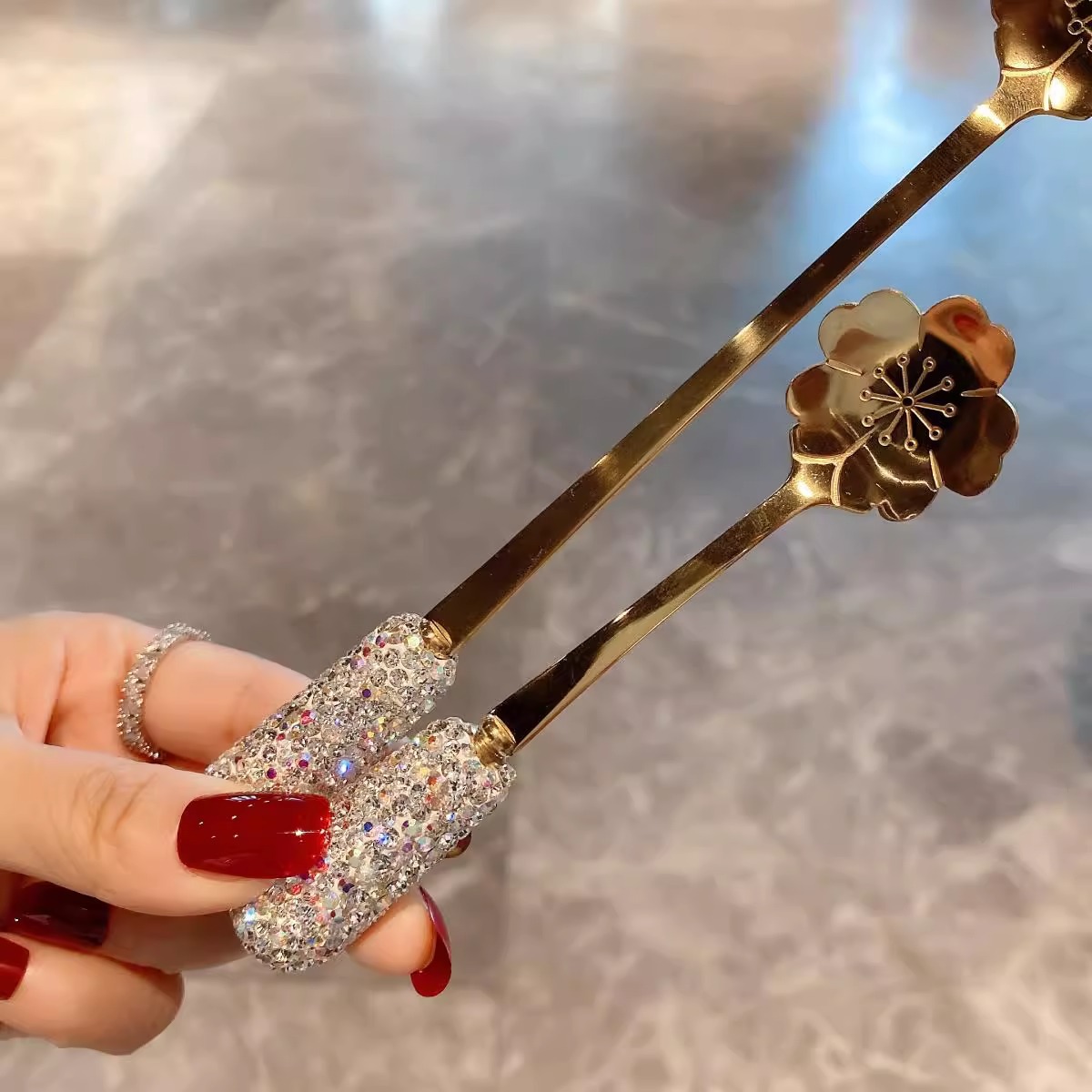 長いダイヤモンドがちりばめられたミキシングスプーン,ダイヤモンドがちりばめられた短いミキシングスプーン
