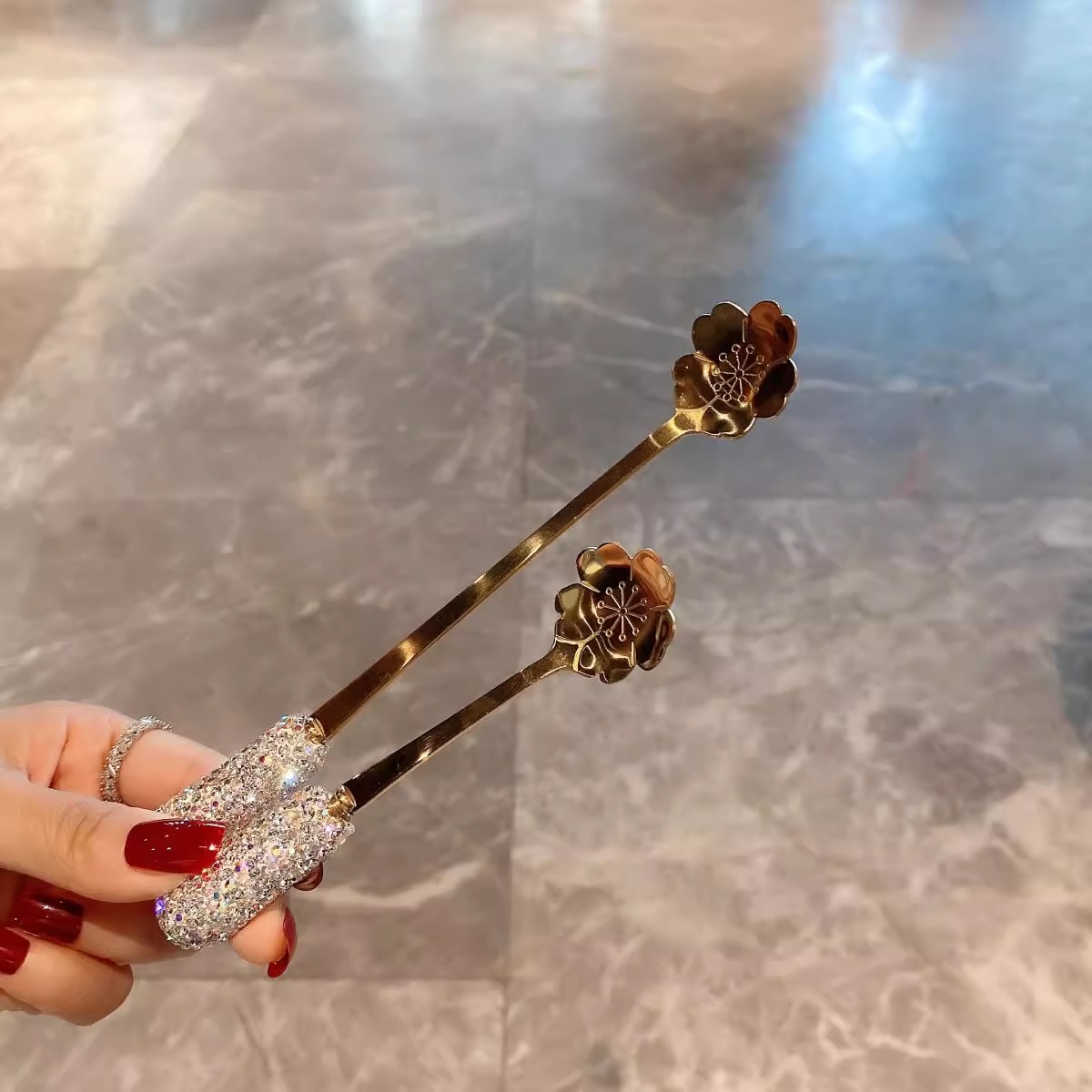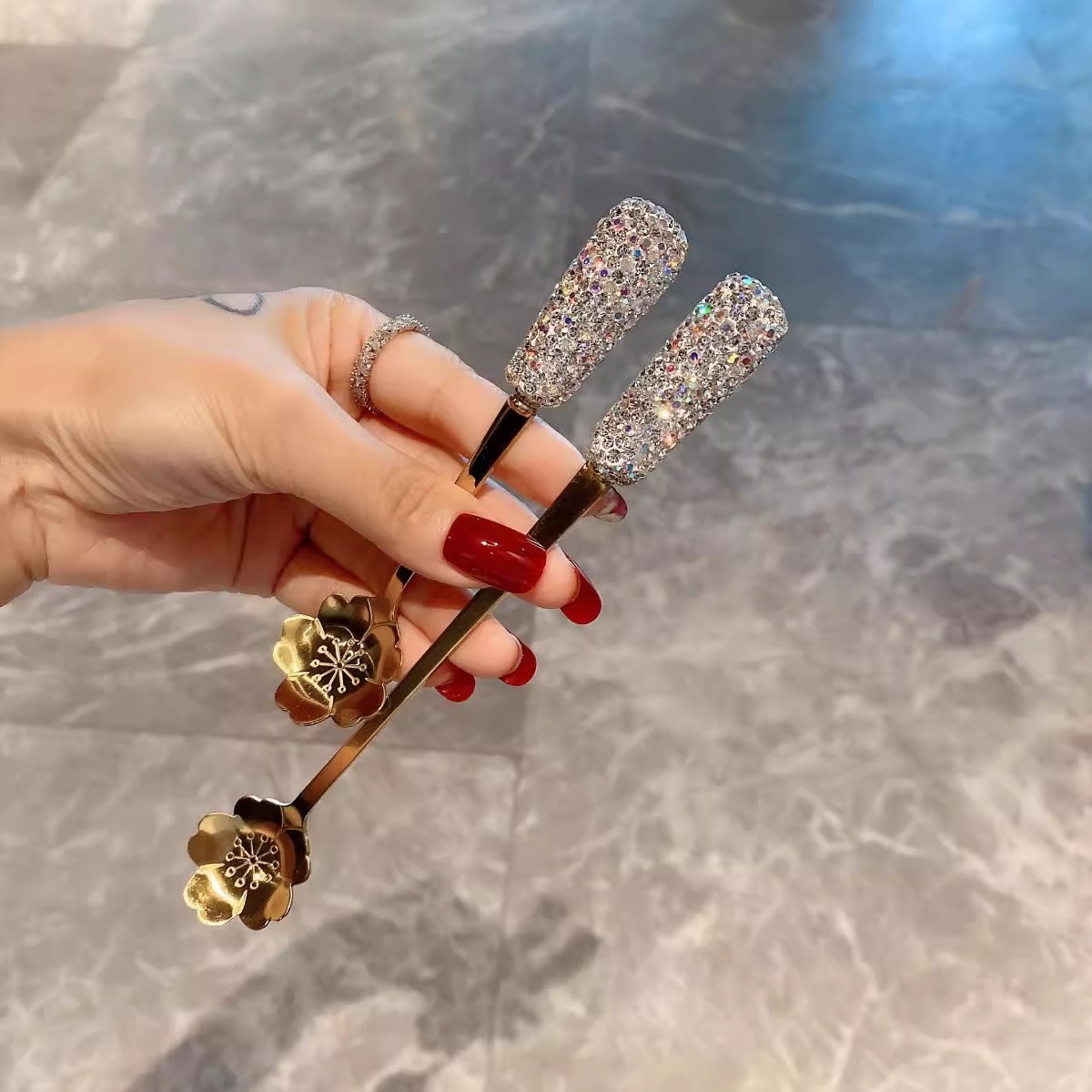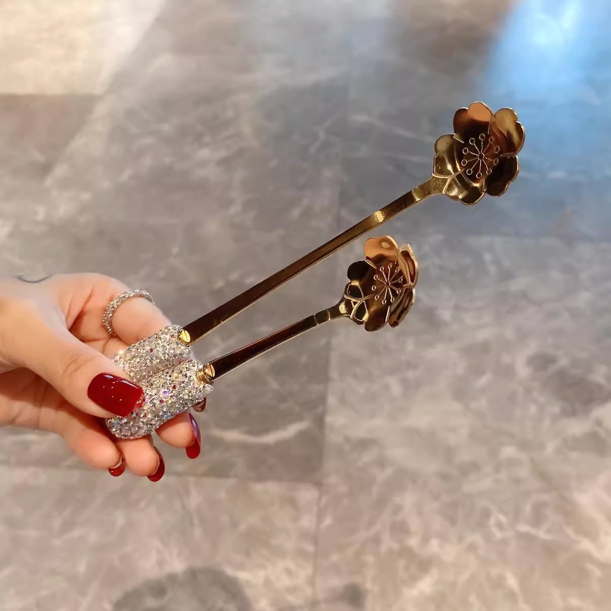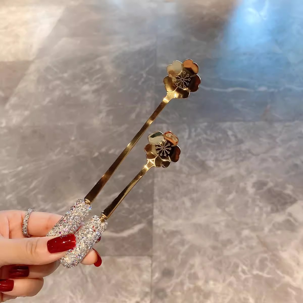 長いダイヤモンドがちりばめられたミキシングスプーン,ダイヤモンドがちりばめられた短いミキシングスプーン
