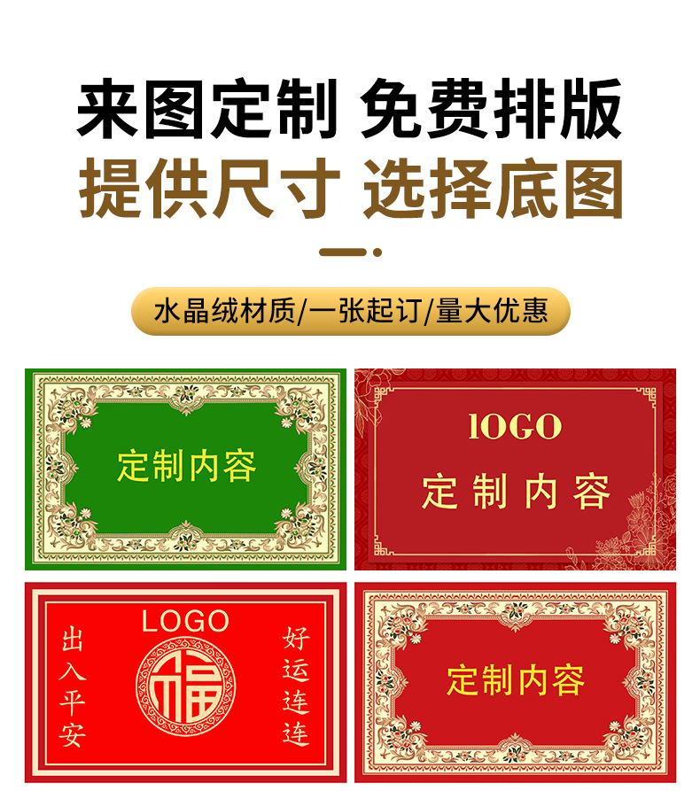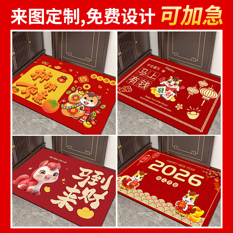 クリスタルベルベットフロアマット カスタムメイド 業務用ギフト 新年 吸水性 滑り止め ロゴ印刷 2026年 馬年 広告用カーペット