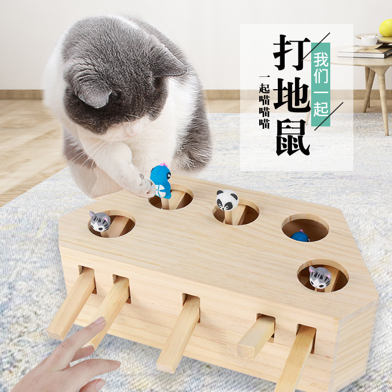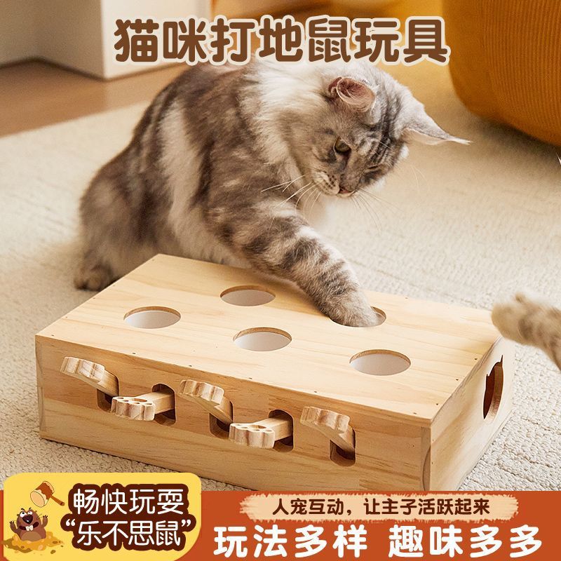 实木猫咪玩具解闷神器益智互动玩具自嗨猫打地鼠玩具新款宠物玩具