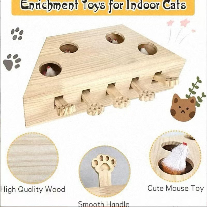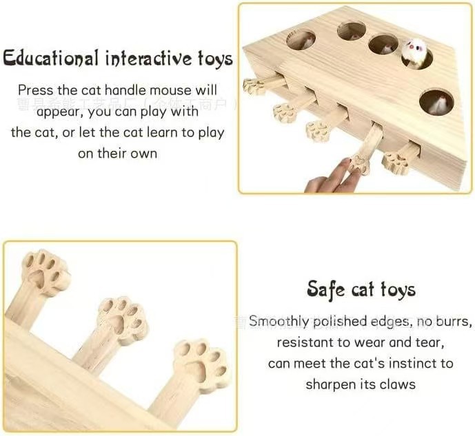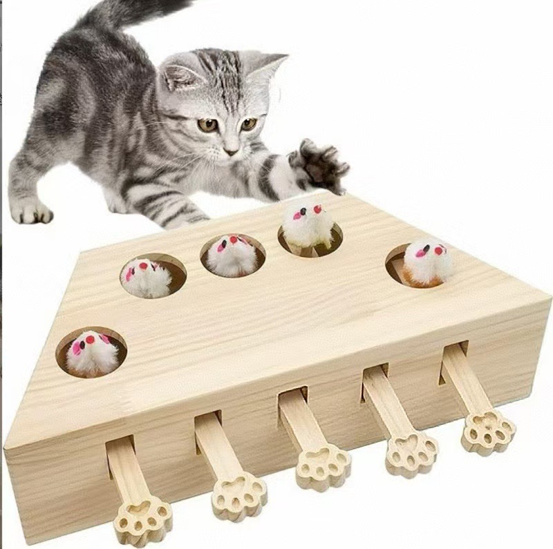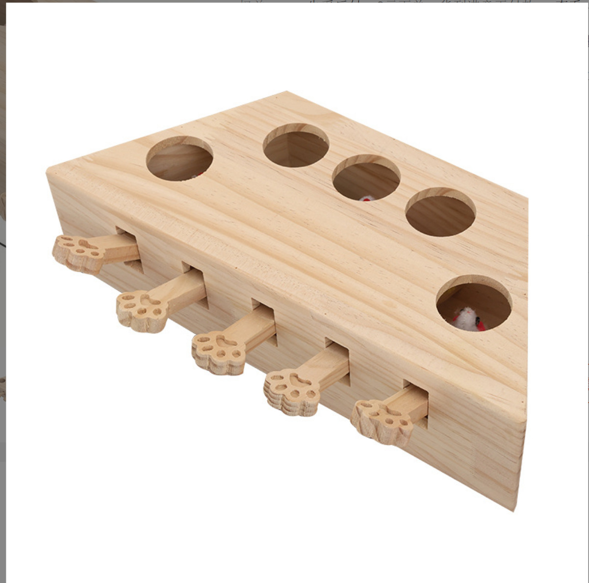Douyin インターネット有名人無垢材もぐらたたき猫のおもちゃ 3 穴 5 穴パズル自己幸福ペット猫のおもちゃ