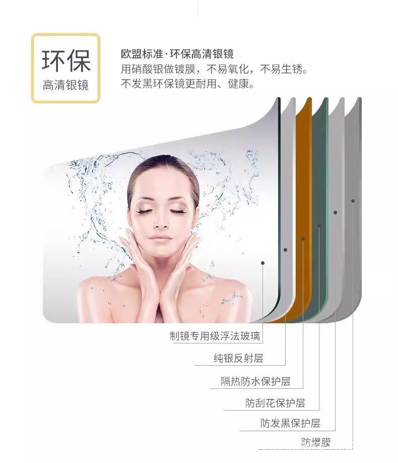 角型知能鏡壁掛け式トイレ浴室鏡化粧ランプ付きled防曇タッチパネル発光壁掛け