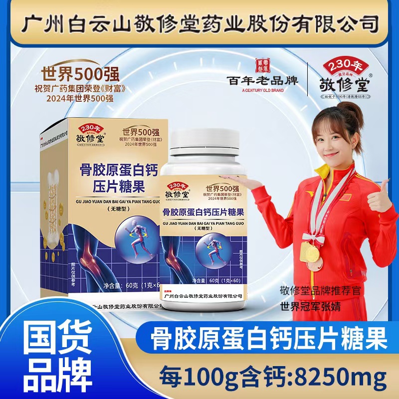 正品敬修堂骨胶原蛋白钙片咀嚼片成人无糖型碳酸钙中老年营养代发