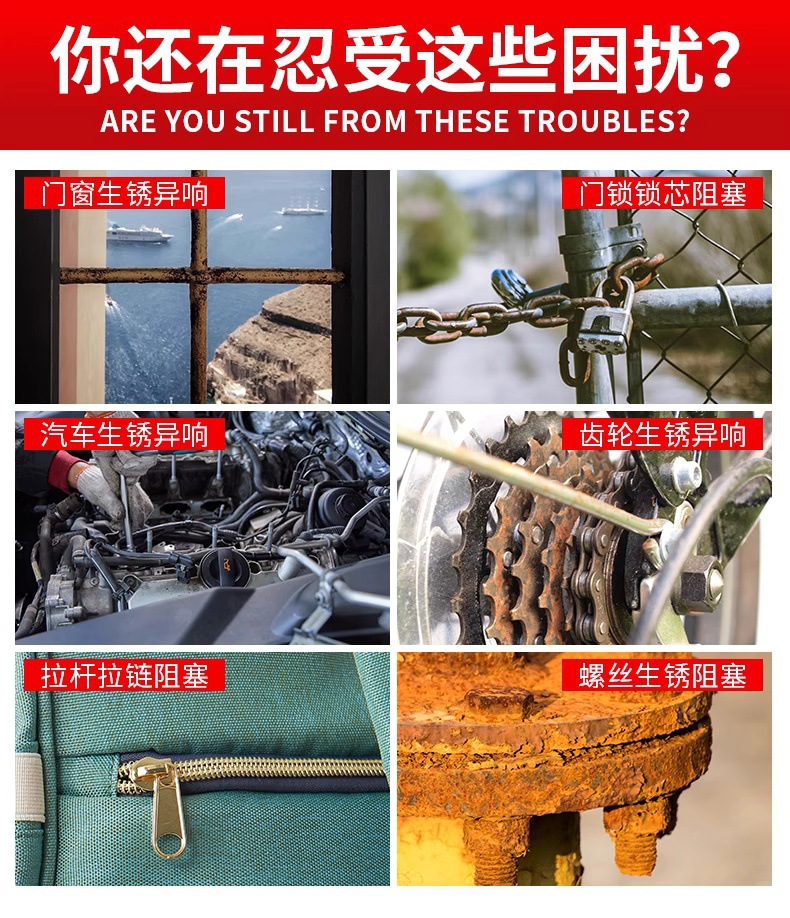 除锈剂强力防锈润滑剂螺丝栓松动门轴合页门锁异响生锈万能清洗剂