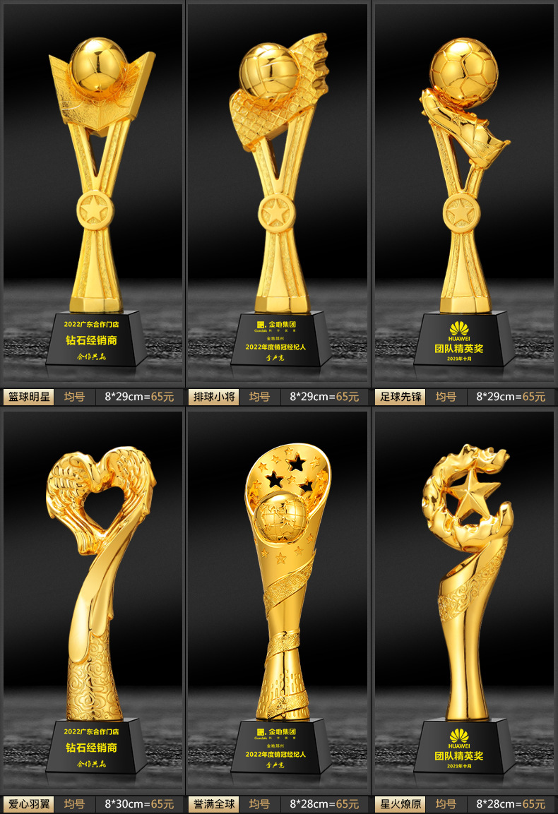 クリスタルトロフィー卸売子供スポーツコンテストメダルお土産樹脂工芸品金属クリエイティブトロフィーメーカー