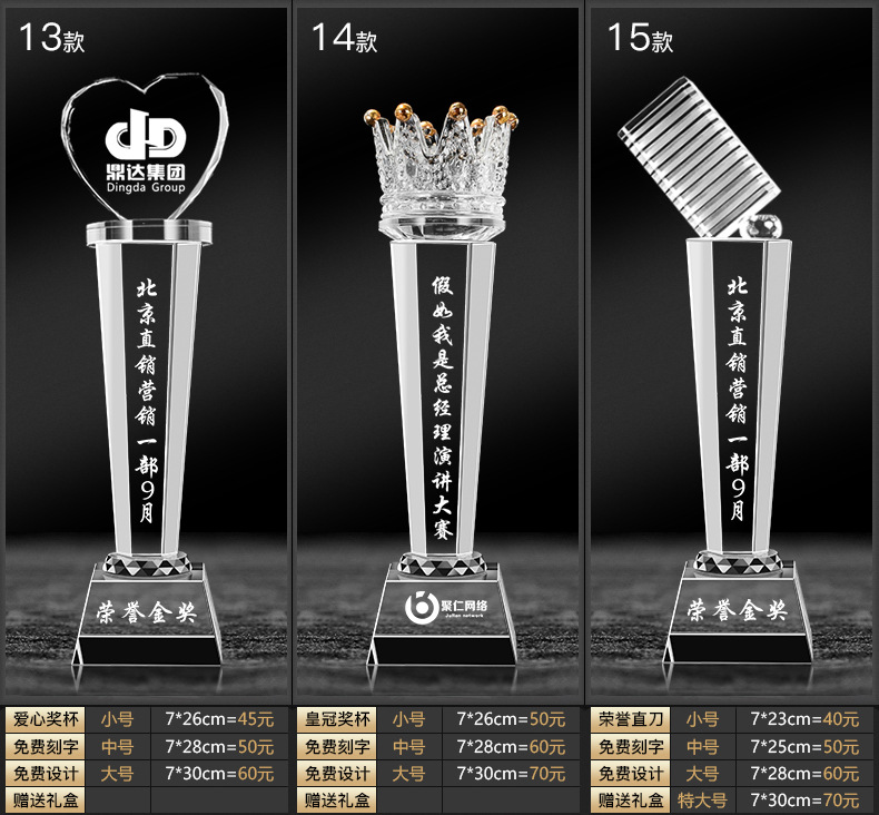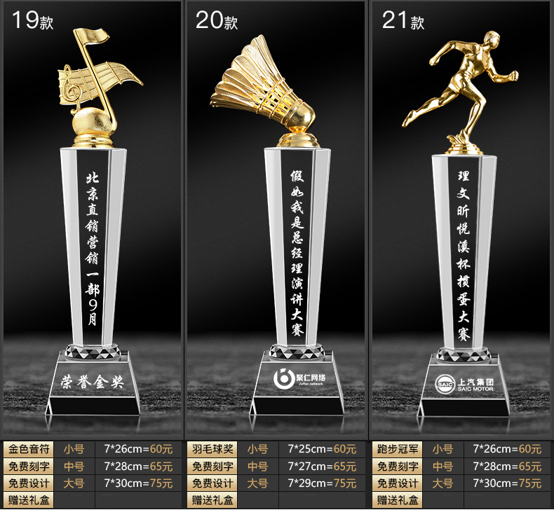 クリスタルトロフィー カスタムトロフィー 年次総会トロフィー 子供競技トロフィー メダル 樹脂トロフィー 新型トロフィー 人気