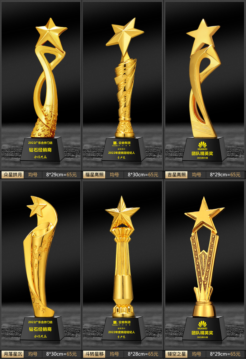 水晶のトロフィーは金属の星制のトロフィーを決めます。
