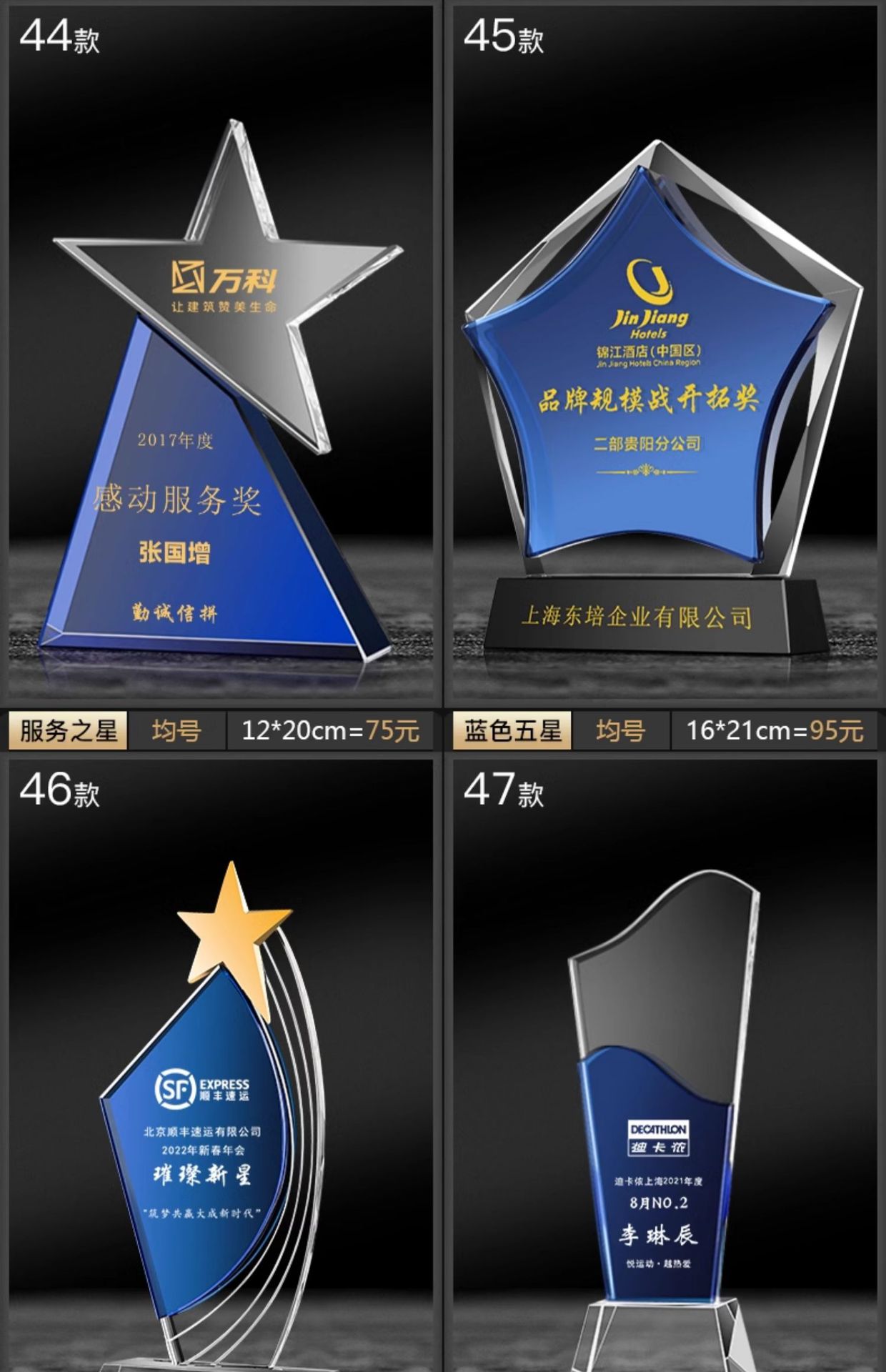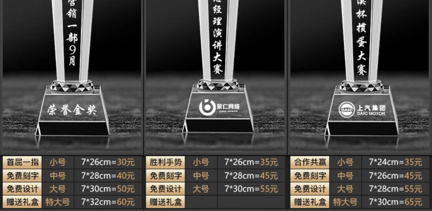 水晶奖杯奖牌大拇指授权牌创意篮球足球体育比赛优秀员工