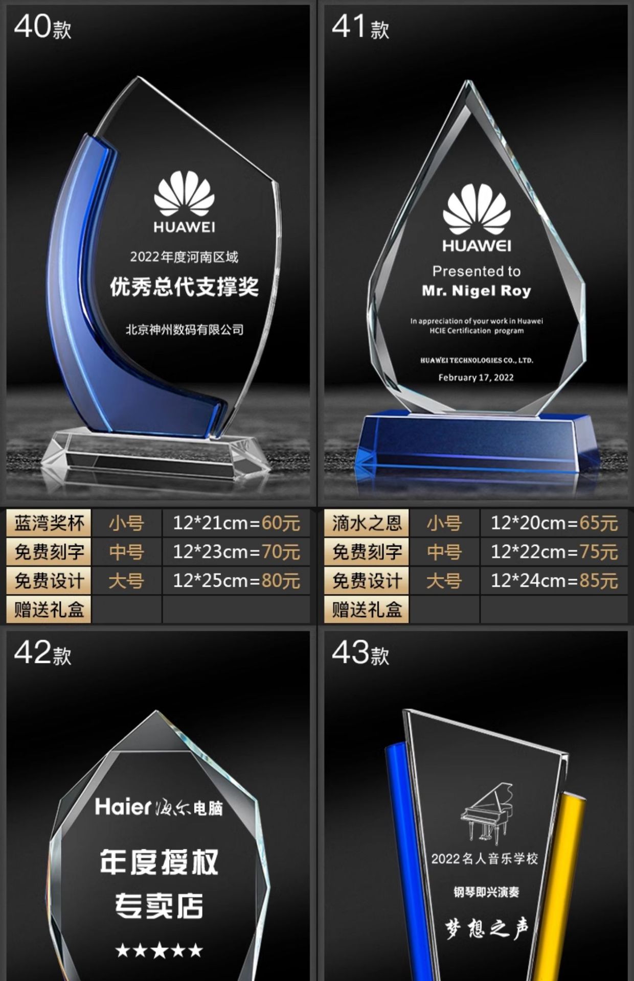 クリスタルトロフィー創意ガラス刃メダル制作レタリングコミュニティボランティア抗疫病記念品表彰トロフィー