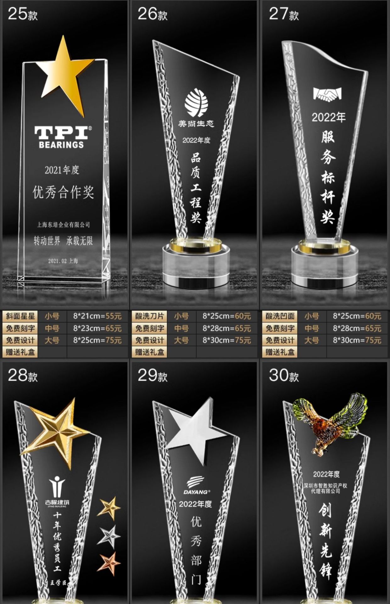 水晶奖杯定刻字实木制树脂彩印创意优秀员工年会荣誉儿童篮球运动