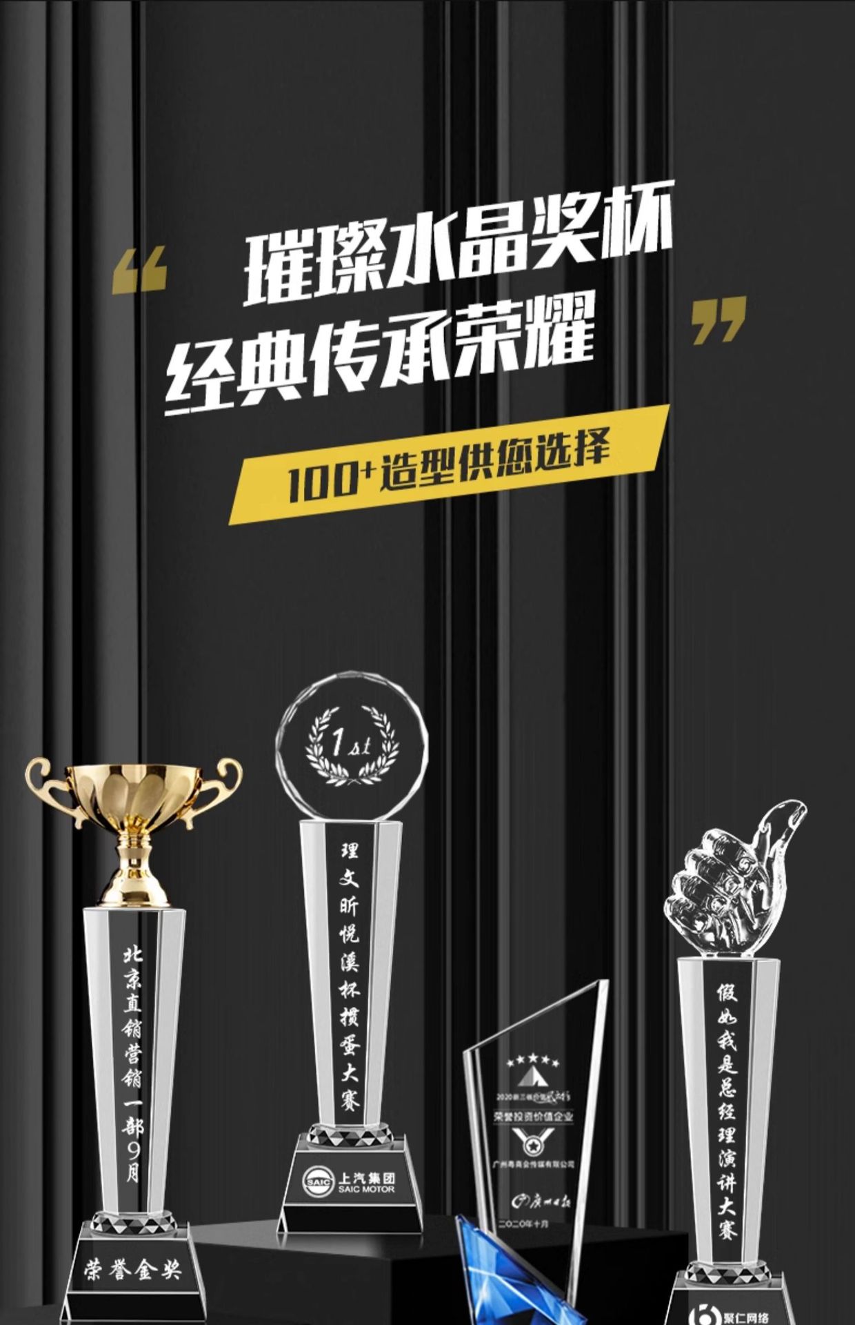 高級クリスタルカラー印刷金属製トロフィー・メダル製作 優秀社員年次総会表彰チーム競技活動トロフィー
