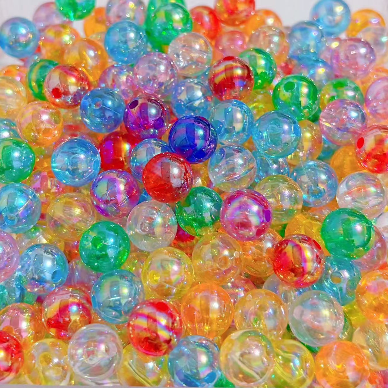 アクリルAB透明幻彩直穴ビーズ ラウンドビーズ DIYブレスレット ネックレス 携帯ストラップ ビーズアクセサリー