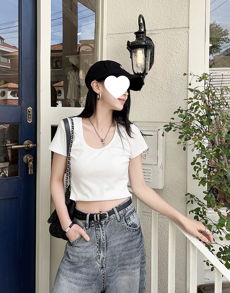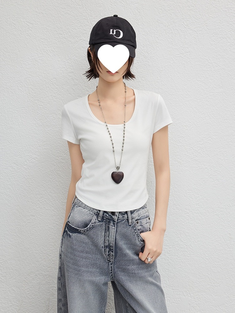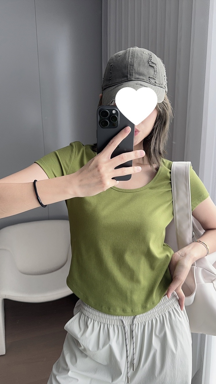 MEIYANG スマイルライン Tシャツ グッドムードフィルター!ストレッチラウンドネック半袖トップス-火曜日