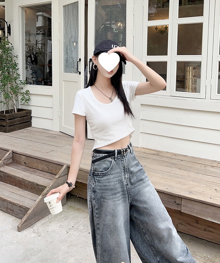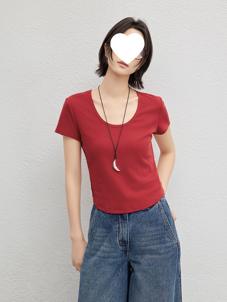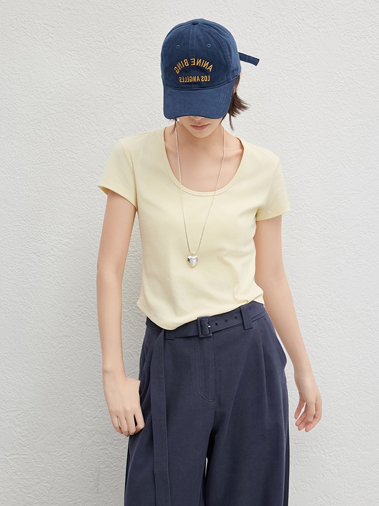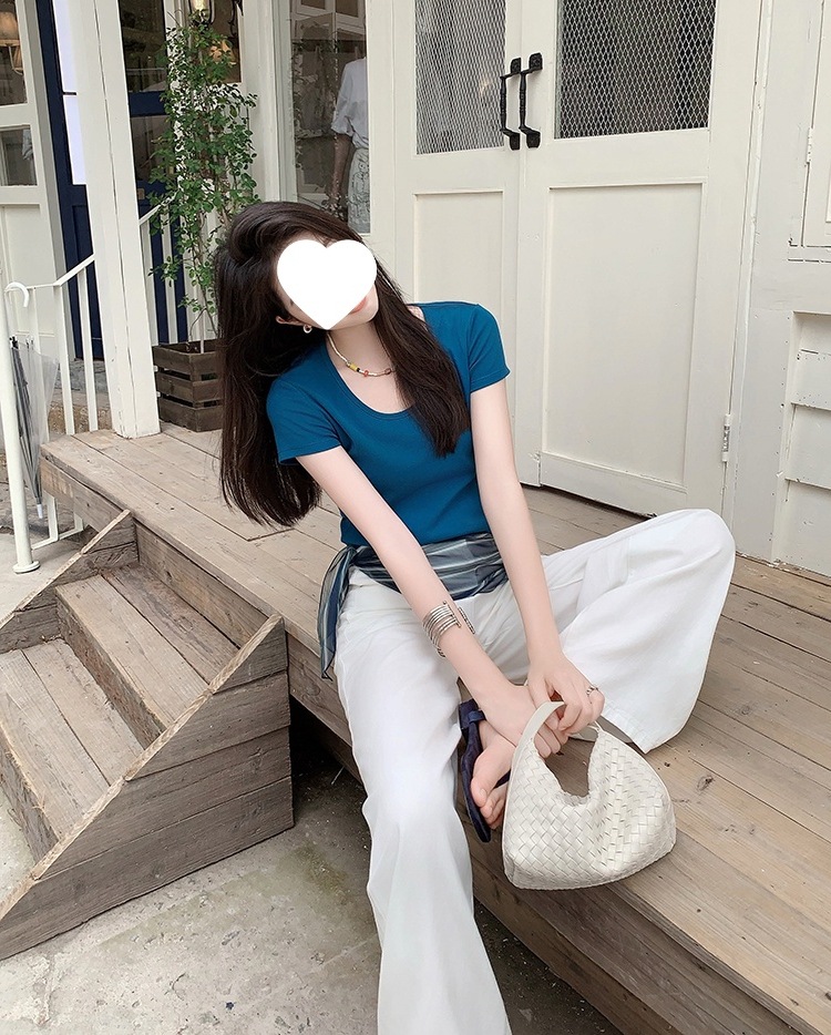 美洋meiyan無畏tシャツ32本筋理感フランス海魂縞カジュアル丸襟刺繍上着